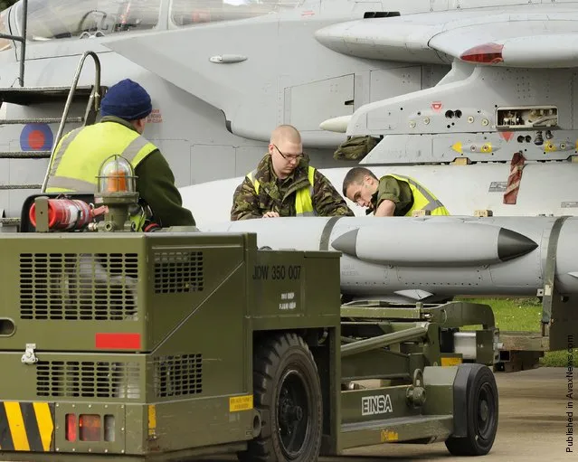 In this handout from the Ministry of Defence, a RAF Tornado GR4 aircraft is prepared for launch, the first UK air combat mission in support of UN Resolution 1973, at RAF Marham on March 19, 2011 in Norfolk, England. (Photo by SAC Lisa Conway/MoD via Getty Images)