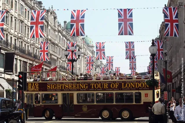 Bunting hangs on Regent Street on April 19, 2011 in London, England. Preparations are underway across the city as the Royal wedding of HRH Prince William and Kate Middleton draws nearer. (Photo by Dan Kitwood/Getty Images)