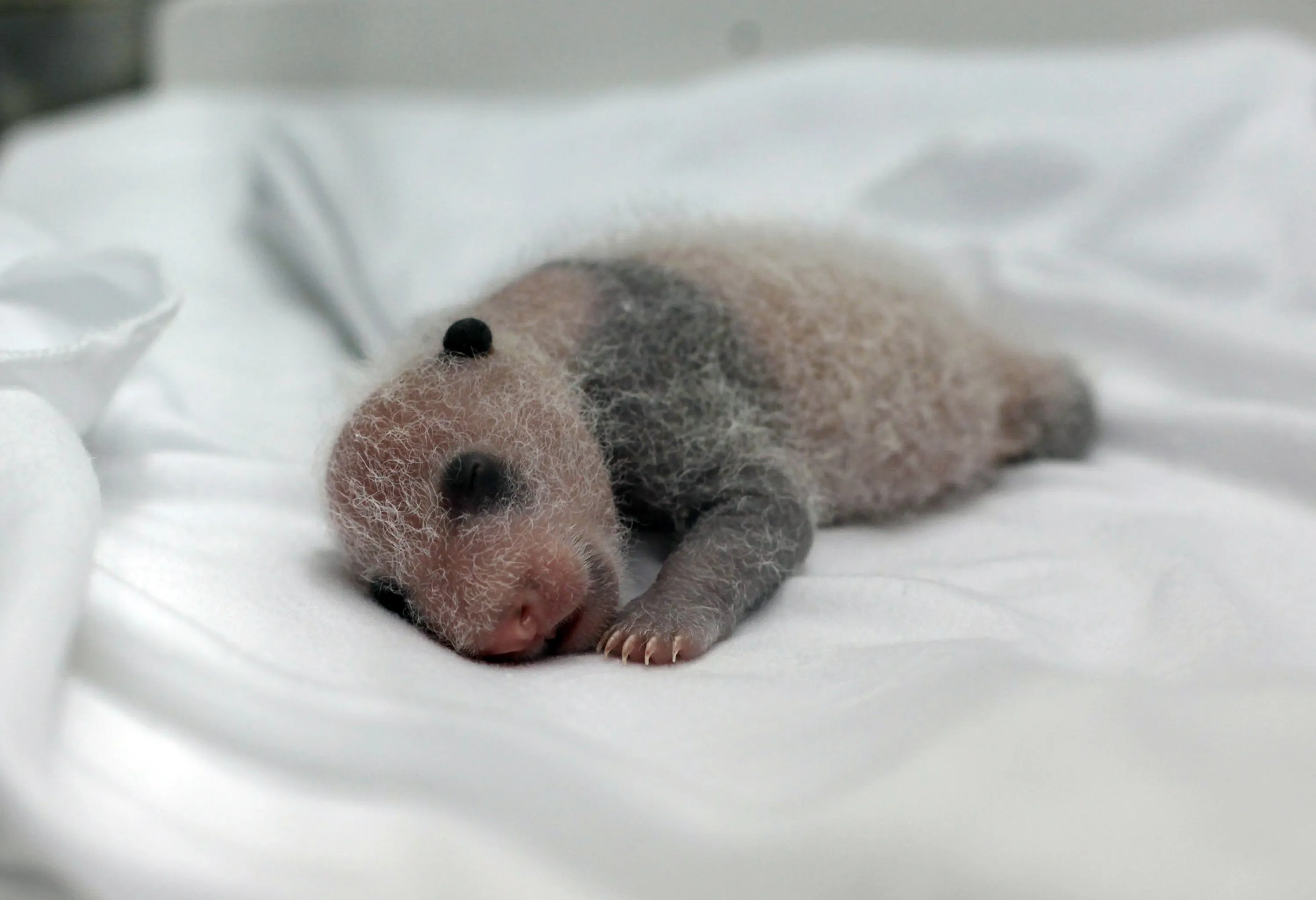 A newborn giant panda cub, one of the triplets which were born to giant panda Juxiao (not pictured), is seen inside an incubator at the Chimelong Safari Park in Guangzhou, Guangdong province August 12, 2014. According to local media, this is the fourth set of giant panda triplets born with the help of artificial insemination procedures in China, and the birth is seen as a miracle due to the low reproduction rate of giant pandas. (Photo by Alex Lee/Reuters)