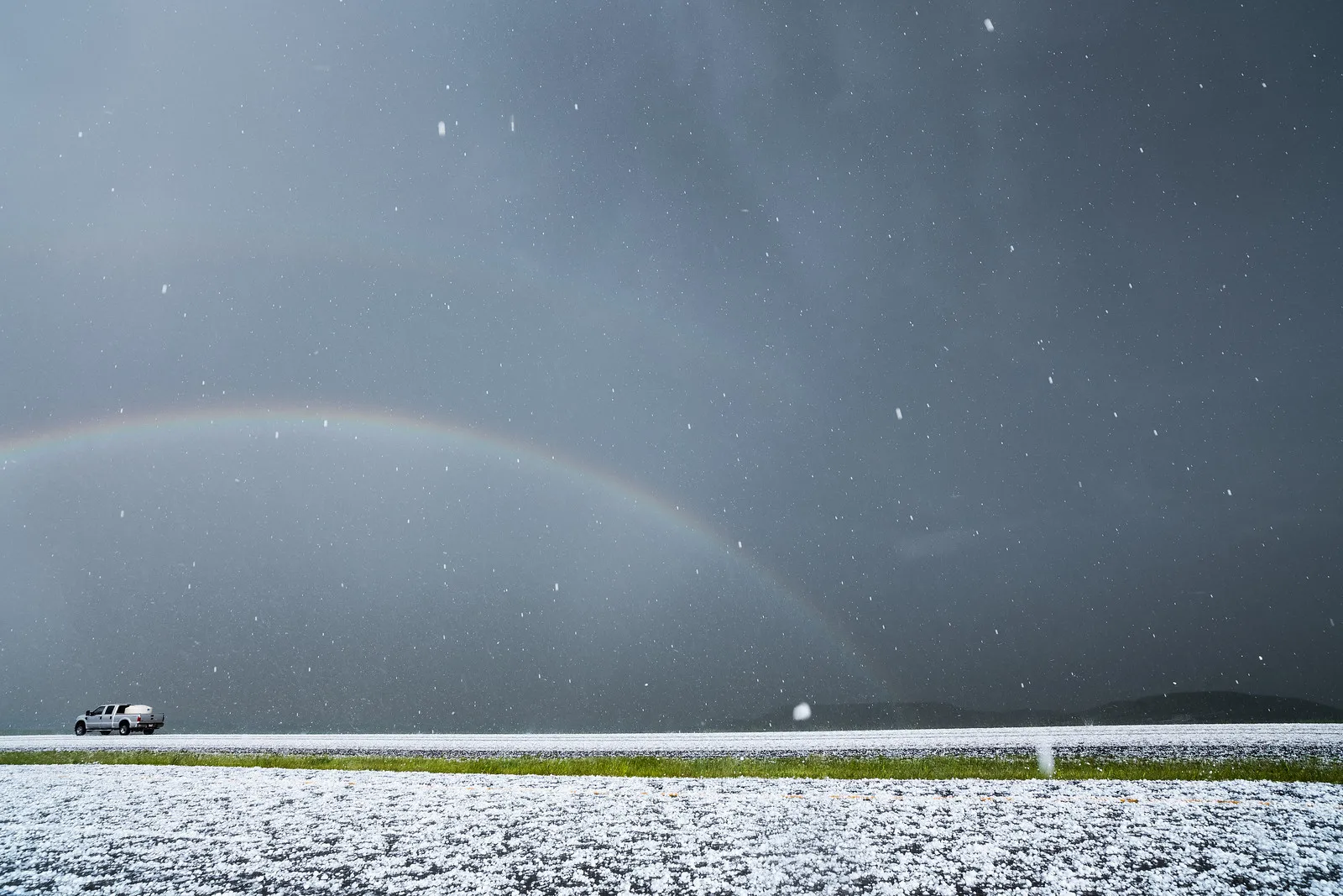 Up to baseball hail falls near Fairburn SD south of Rapid City from a high based summer storm. (Photo by Mike Hollingshead)