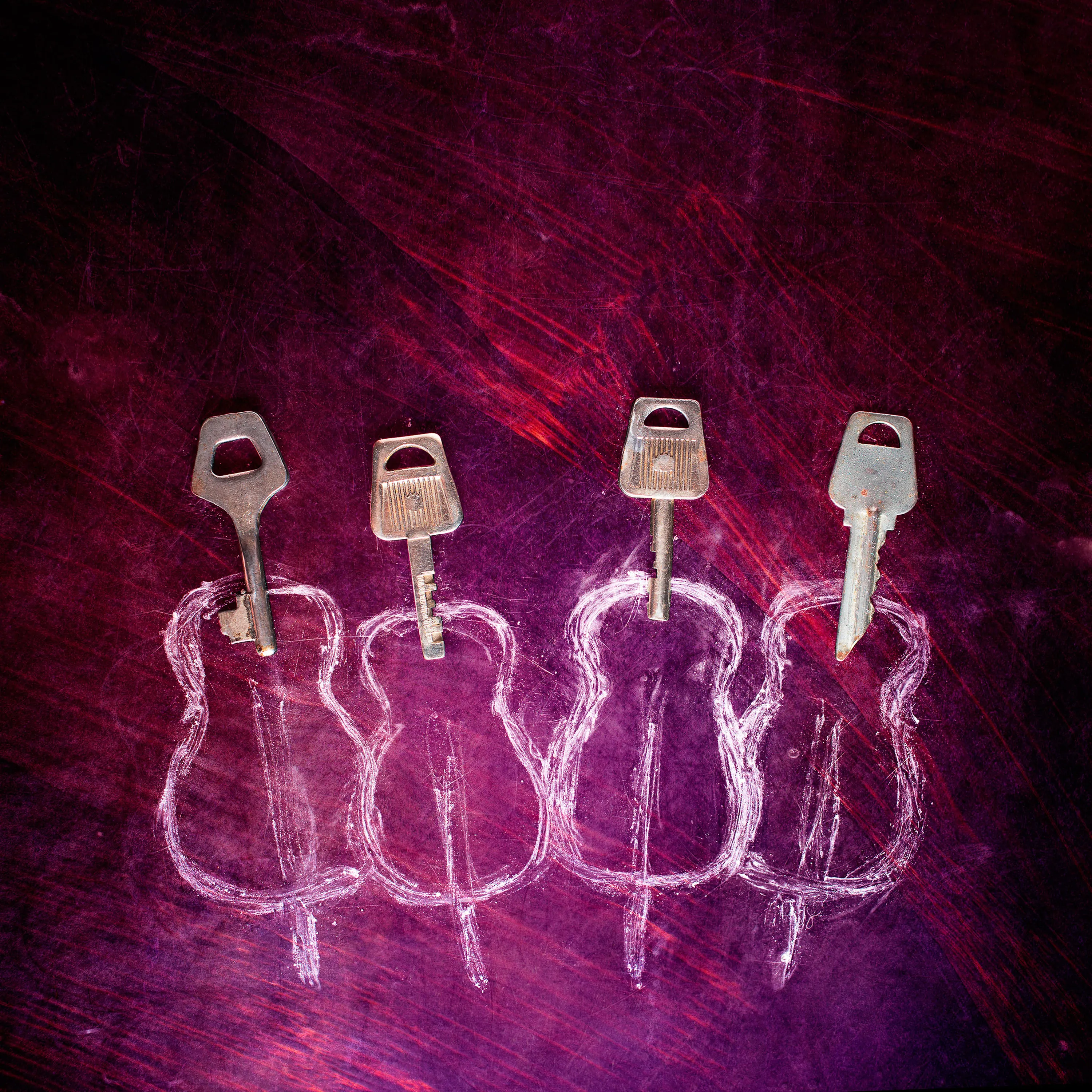 Violins made using keys and chalk. (Photo by Stanislav Aristov/Caters News)