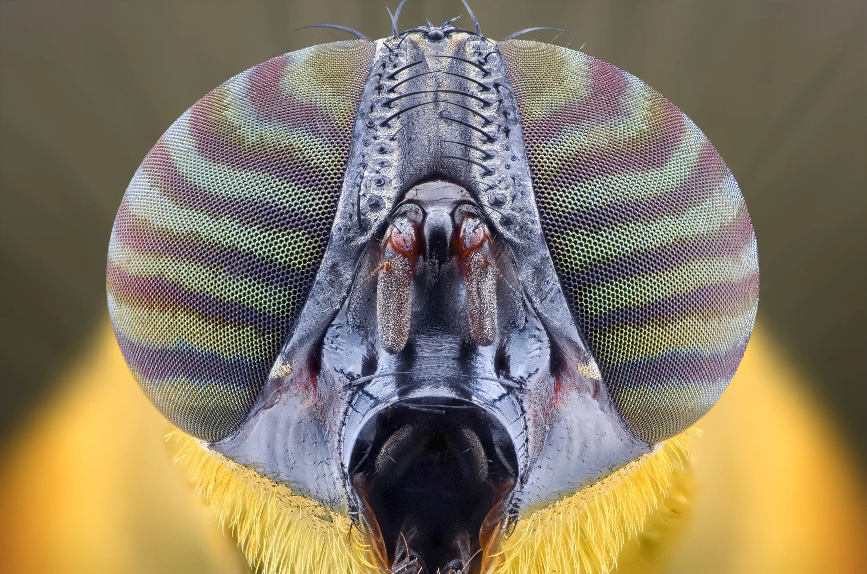 A close-up shot of a fly on August 2014, in Banten, Indonesia. Wildlife photographer takes incredible close-up images of tiny bugs. Yudy Sauw has captured close-up images of creepy crawlies – revealing their disturbing faces. The insects have an assortment bulging eyes and sharp pincers and look grotesque in the face-to-face shots. The miniature-models include a soldier fly, a red ant and a longhorn beetle. The 33-year-old photographed the bugs at his home studio in Banten, Indonesia, placing them 2-10 centimeters away from the camera. (Photo by Yudy Sauw/Barcroft Media)