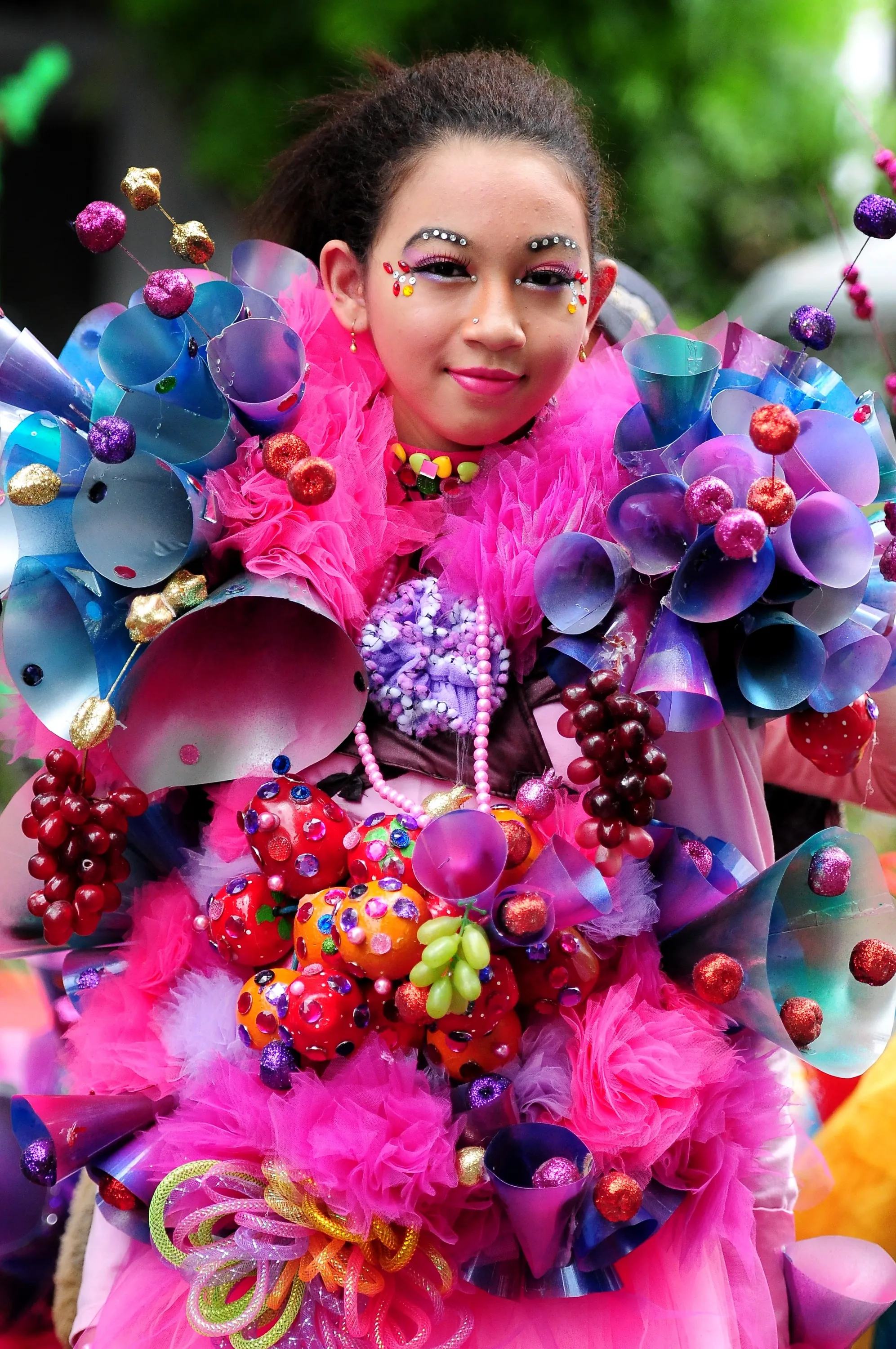 A model wears a chemistry inspired costume in the kids carnival during the 13th Jember Fashion Carnival 2014 on August 21, 2014 in Jember, Indonesia. (Photo by Robertus Pudyanto/Getty Images)