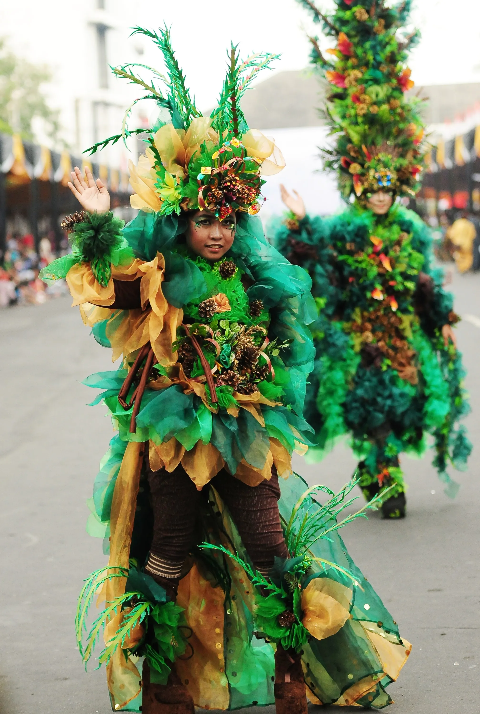 A model wears a Pine Forest costume in the kids carnival during The 13th Jember Fashion Carnival 2014 on August 21, 2014 in Jember, Indonesia. (Photo by Robertus Pudyanto/Getty Images)