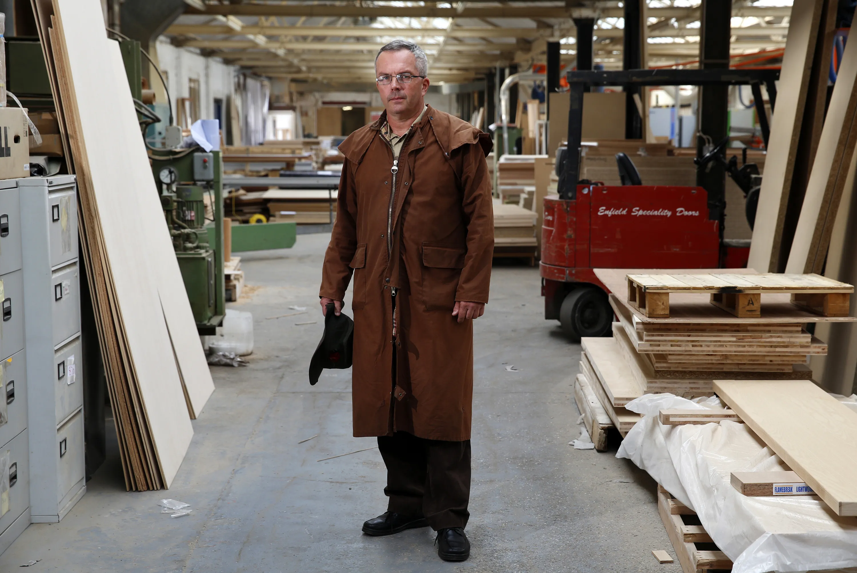 Factory landlord Lawrence Taylor poses in the factory he rents to Enfield Speciality Doors in Enfield, north London, August 12, 2014. (Photo by Luke MacGregor/Reuters)