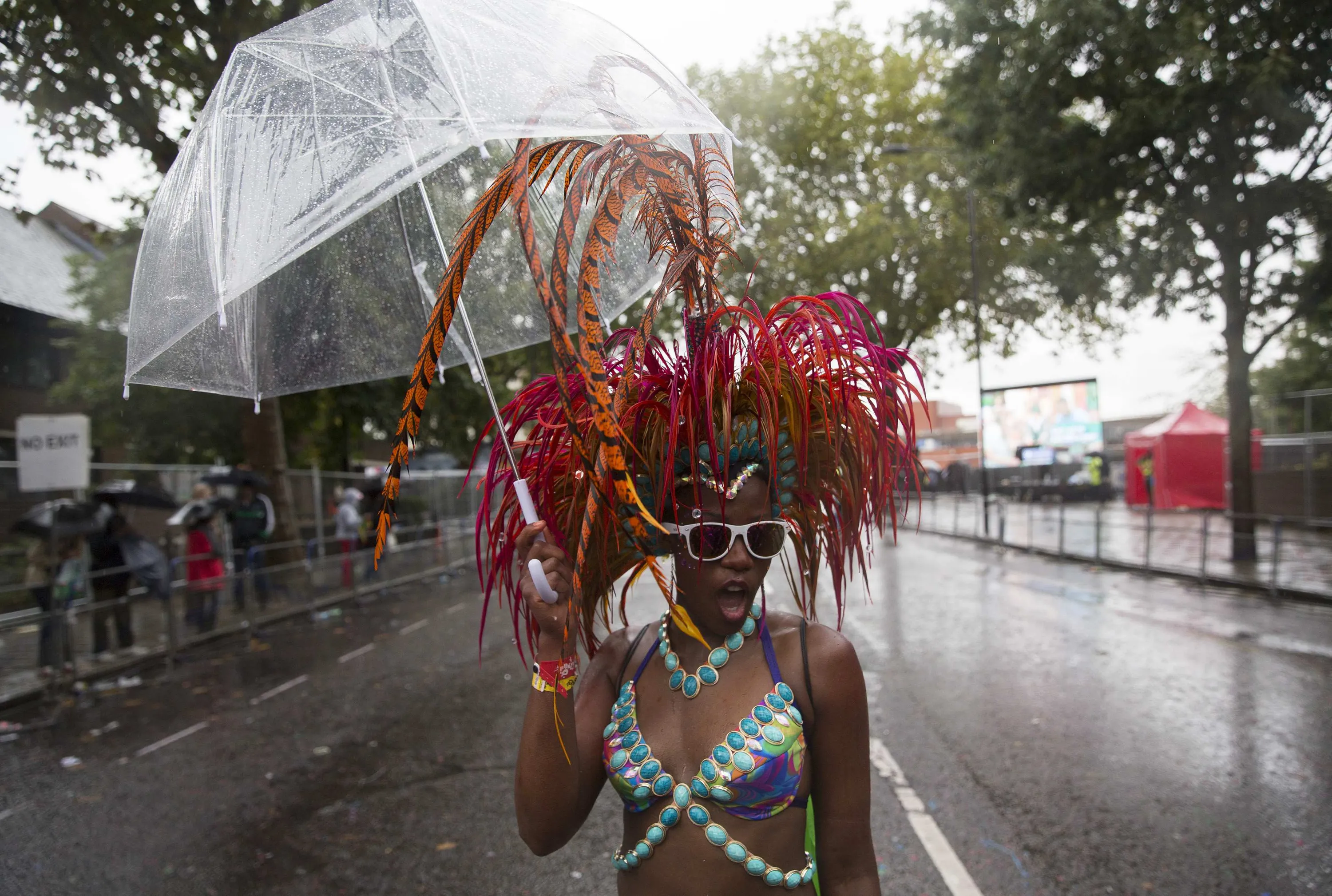 A performer poses as she takes part in the Notting Hill Carnival in west London August 25, 2014. (Photo by Neil Hall/Reuters)