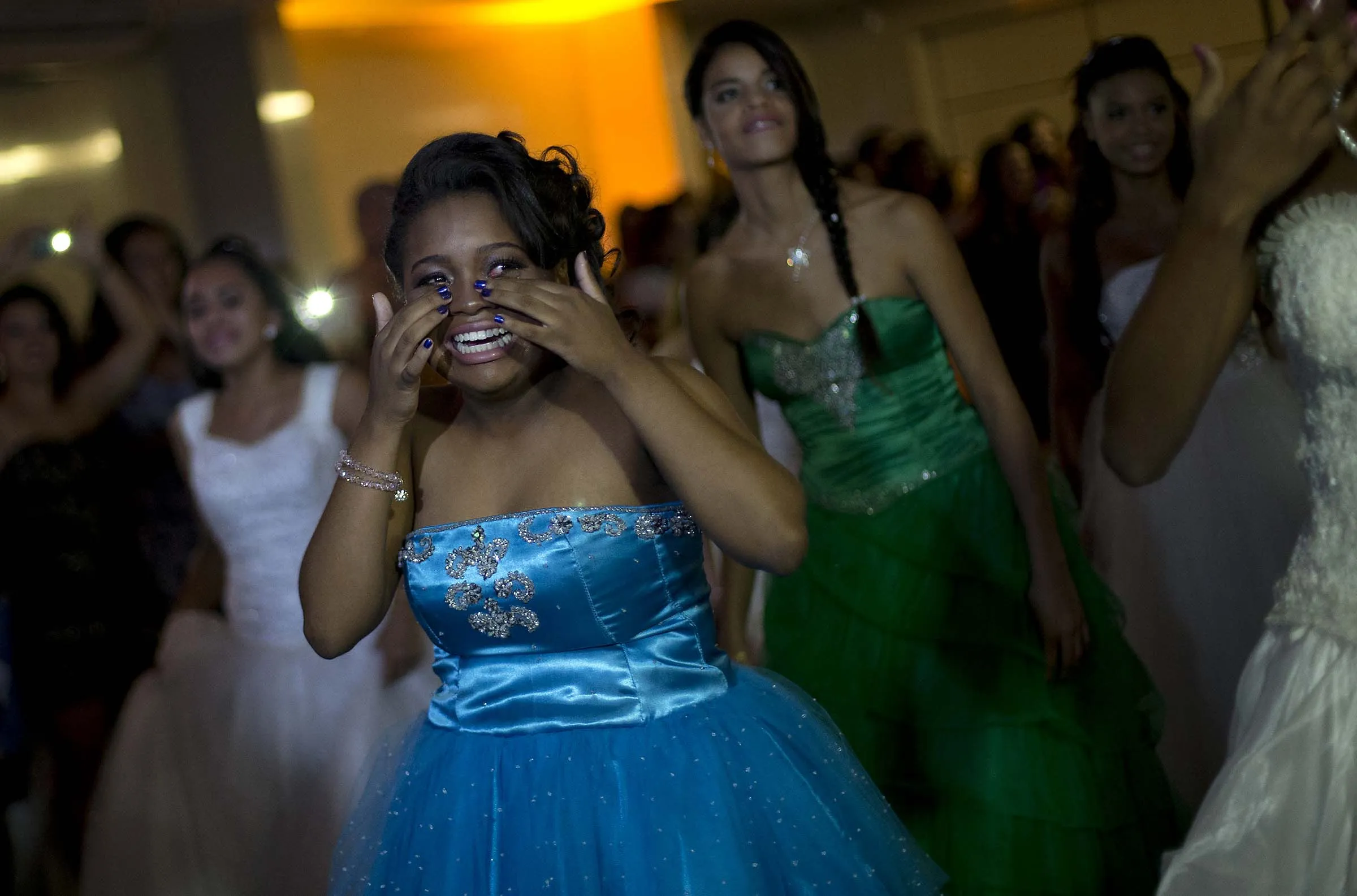 Jaqueline wipes away tears of joy during the ball. (Photo by Silvia Izquierdo/AP Photo via The Palm Beach Post)