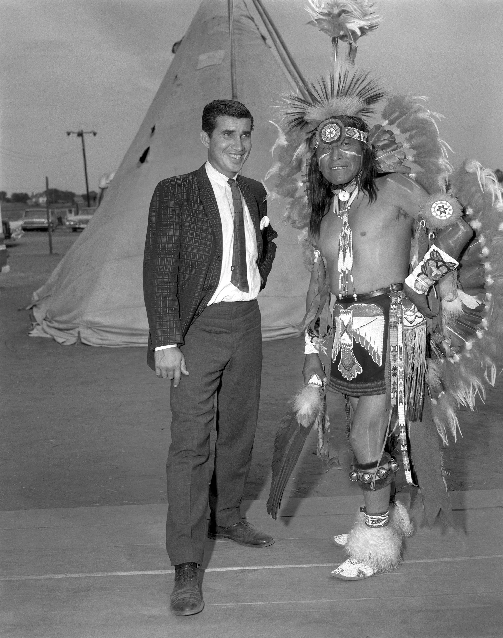 Danny Williams, left, and George “Woogie” Watchtaker (Comanche) at the Anadarko Indian Exposition. Anadarko, Oklahoma, ca. 1959. (Photo and caption by 2014 Estate of Horace Poolaw)