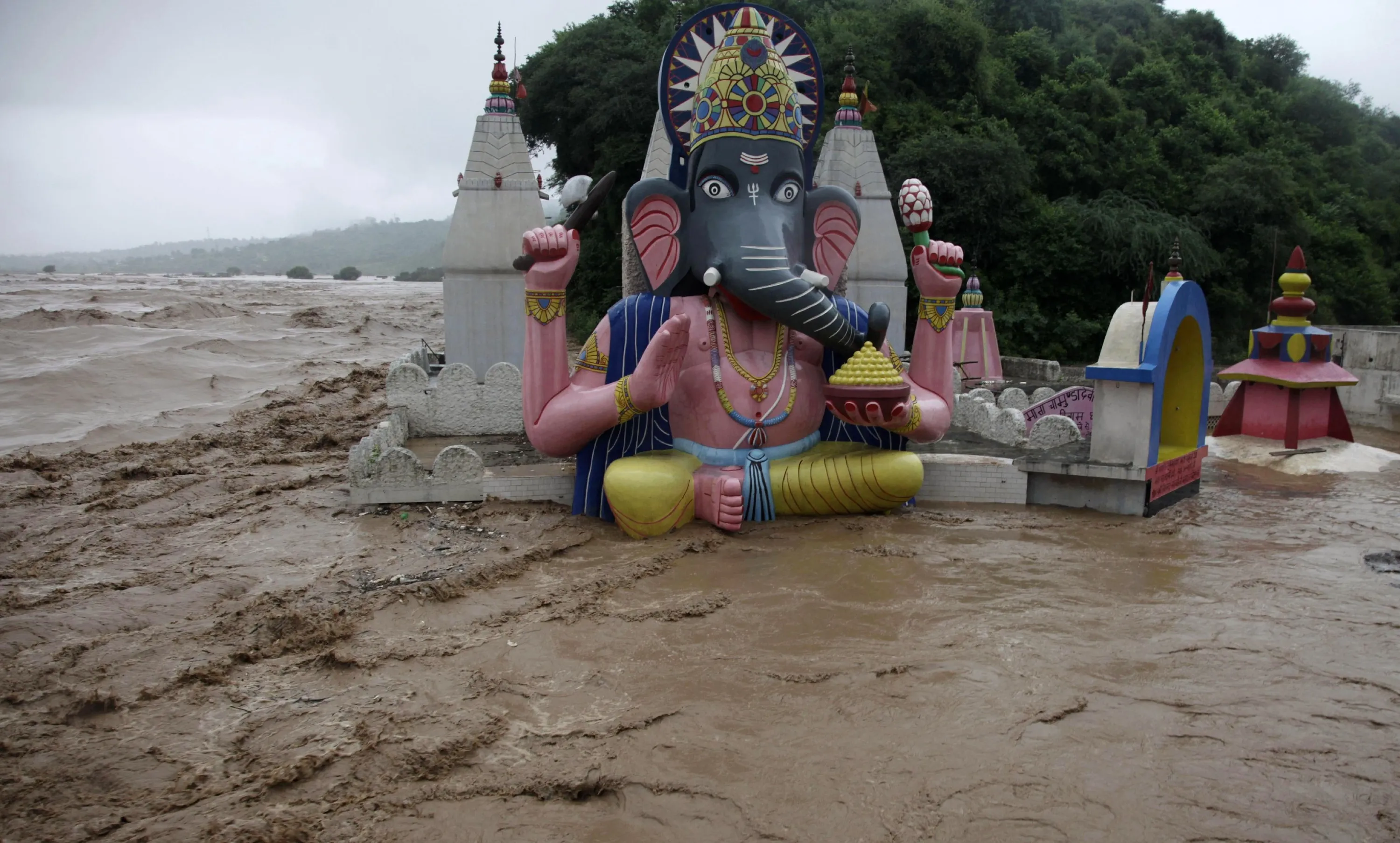Floodwaters engulf temples in Jammu, India, Saturday, September 6, 2014. Heavy monsoon rains have caused flash floods and landslides that left more than 100 people dead in the disputed Himalayan region of Kashmir and in eastern Pakistan, officials said Friday. (Photo by Channi Anand/AP Photo)