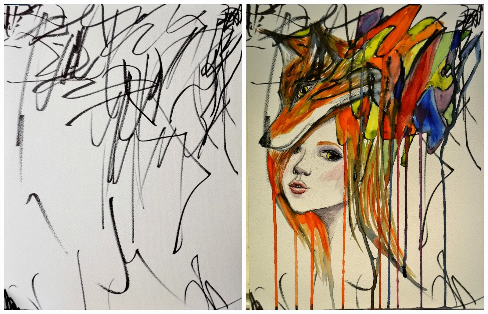 Canadian artist and mother Ruth Oosterman started collaborating with her 2-year-old daughter Eve earlier this year. Ruth takes Eve’s doodles and adds watercolors to them, turning the collaborative works of art into beautiful paintings. She posts the results on her blog, The Mischievous Mommy and also posts timelapses on YouTube. Ruth is adamant that this is a collaborative effort and that Eve has full say if she doesn’t want her mother to paint over her sketches. Ruth Oosterman
