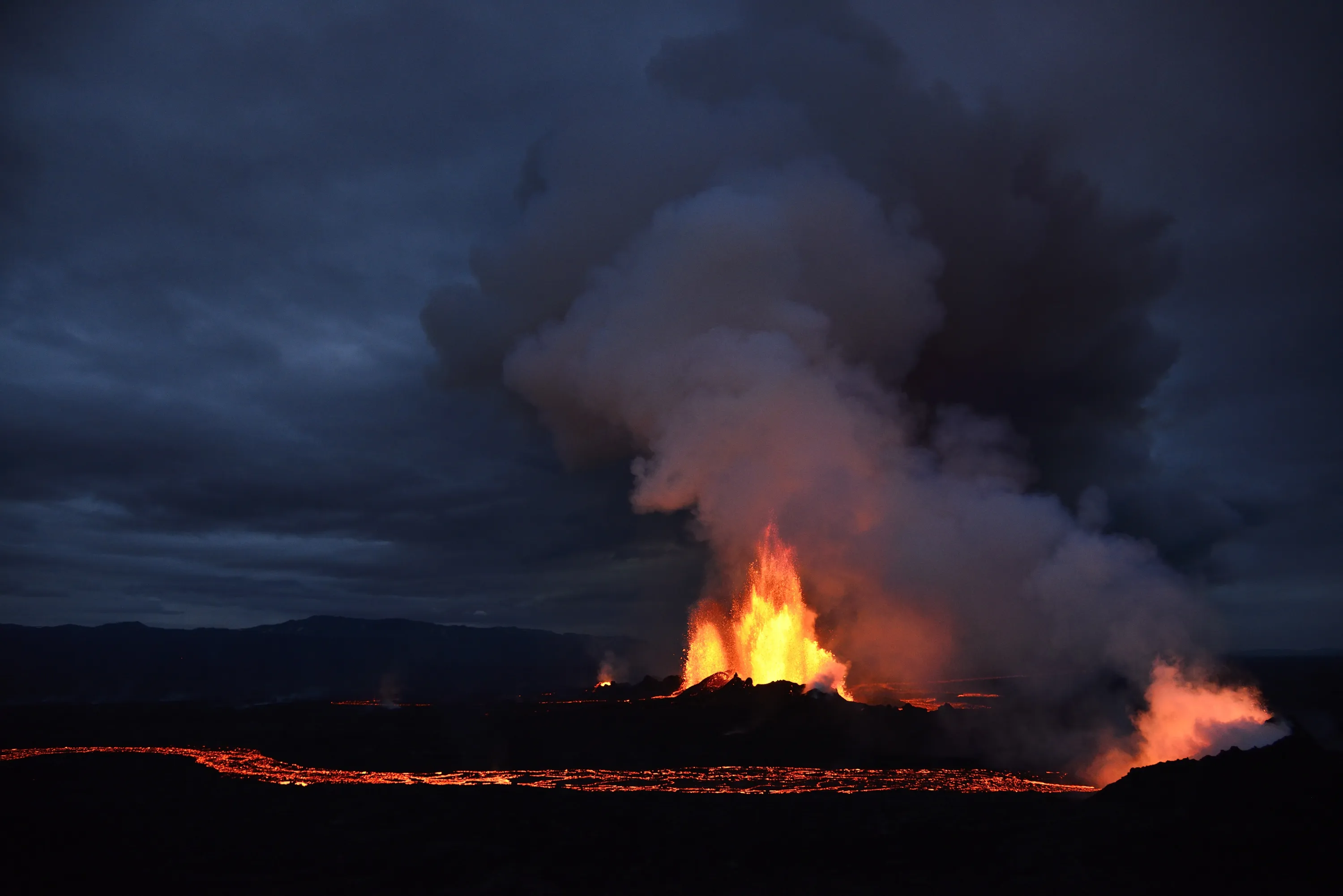 An aerial view of the lava erupting during volcanic eruption in September, in Bardarbunga, Iceland. (Photo by Örvar Atli Þorgeirsson/Barcroft Media)