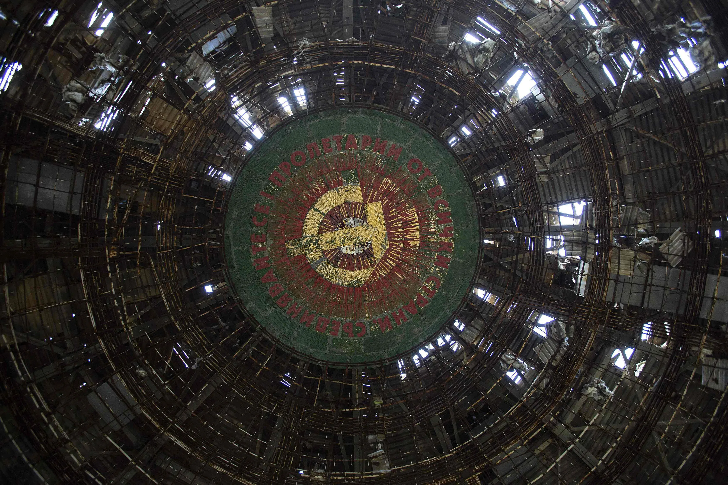 A view of the ceiling of the crumbling main hall of the Memorial House of the Bulgarian Communist Party on mount Buzludzha September 12, 2014. The text reads “Proletarians of all countries, unite!”. (Photo by Stoyan Nenov/Reuters)