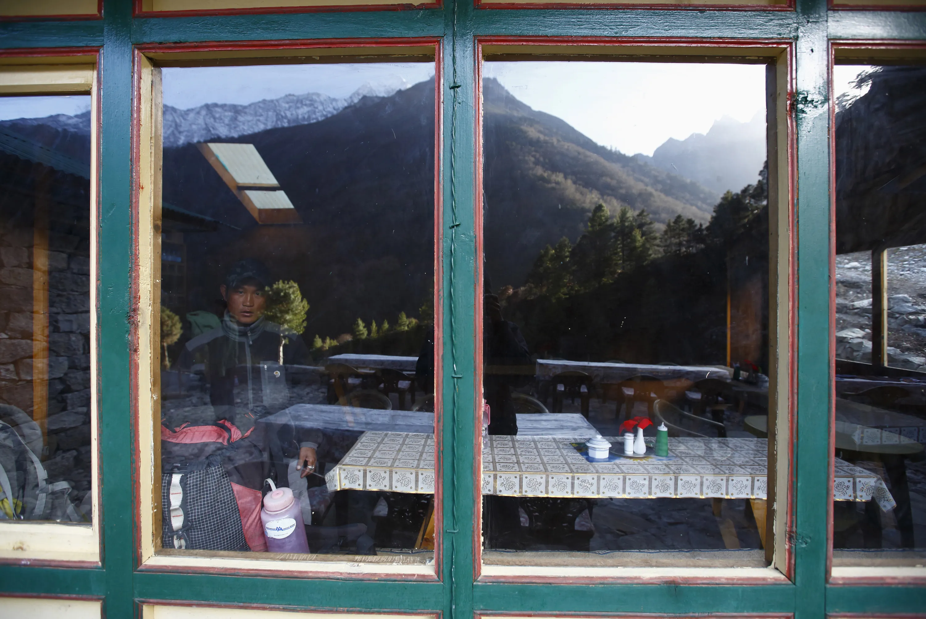 Porter and climber Tenzing Bhotay Sherpa, 31, looks through the window of a lodge after arriving from Everest base camp, in Phunki Tenga in Solukhumbu District April 30, 2014. (Photo by Navesh Chitrakar/Reuters)