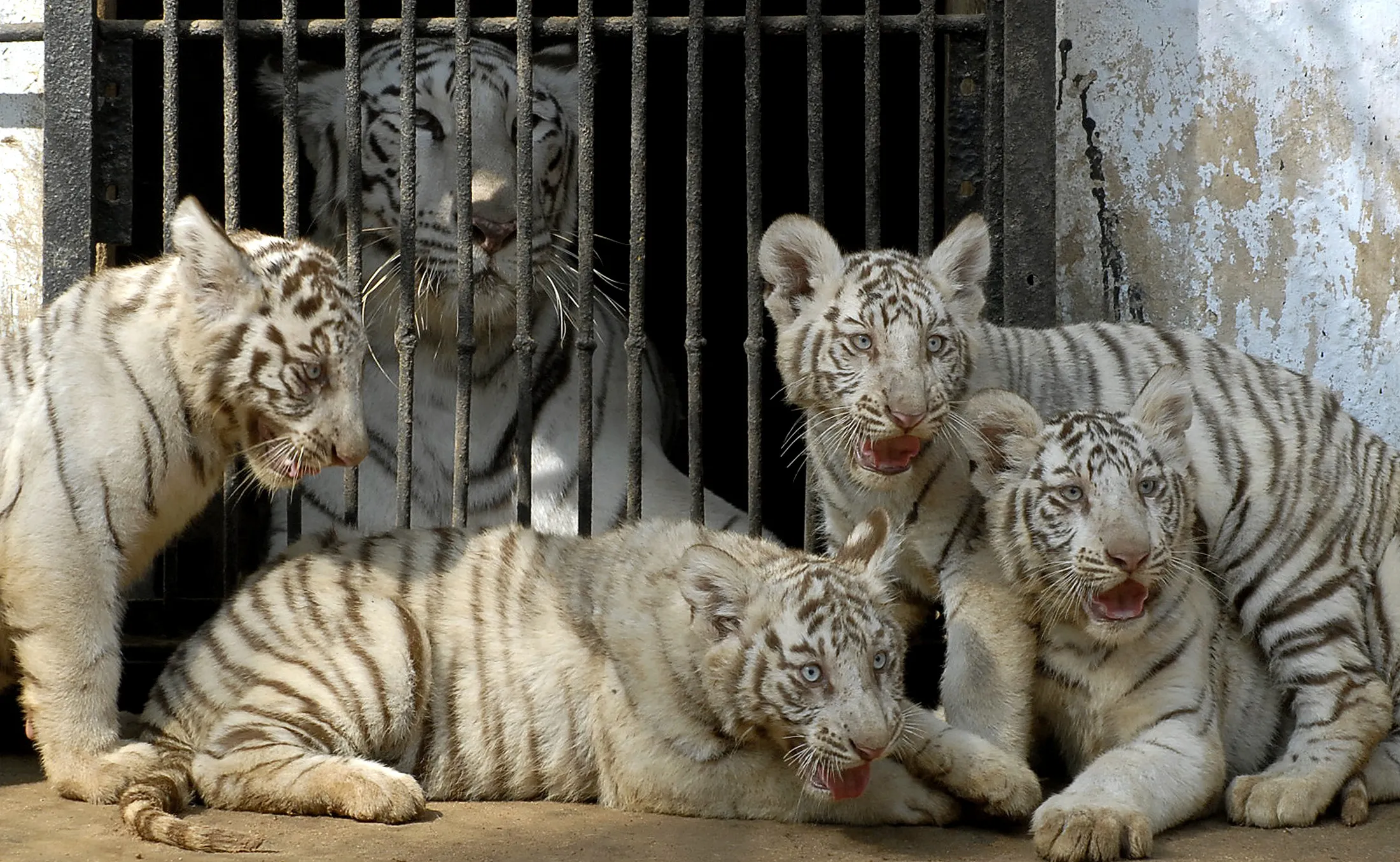 White tigers sit inside their enclosure in a zoological park in Hyderabad January 12, 2007. (Photo by Krishnendu Halder/Reuters)