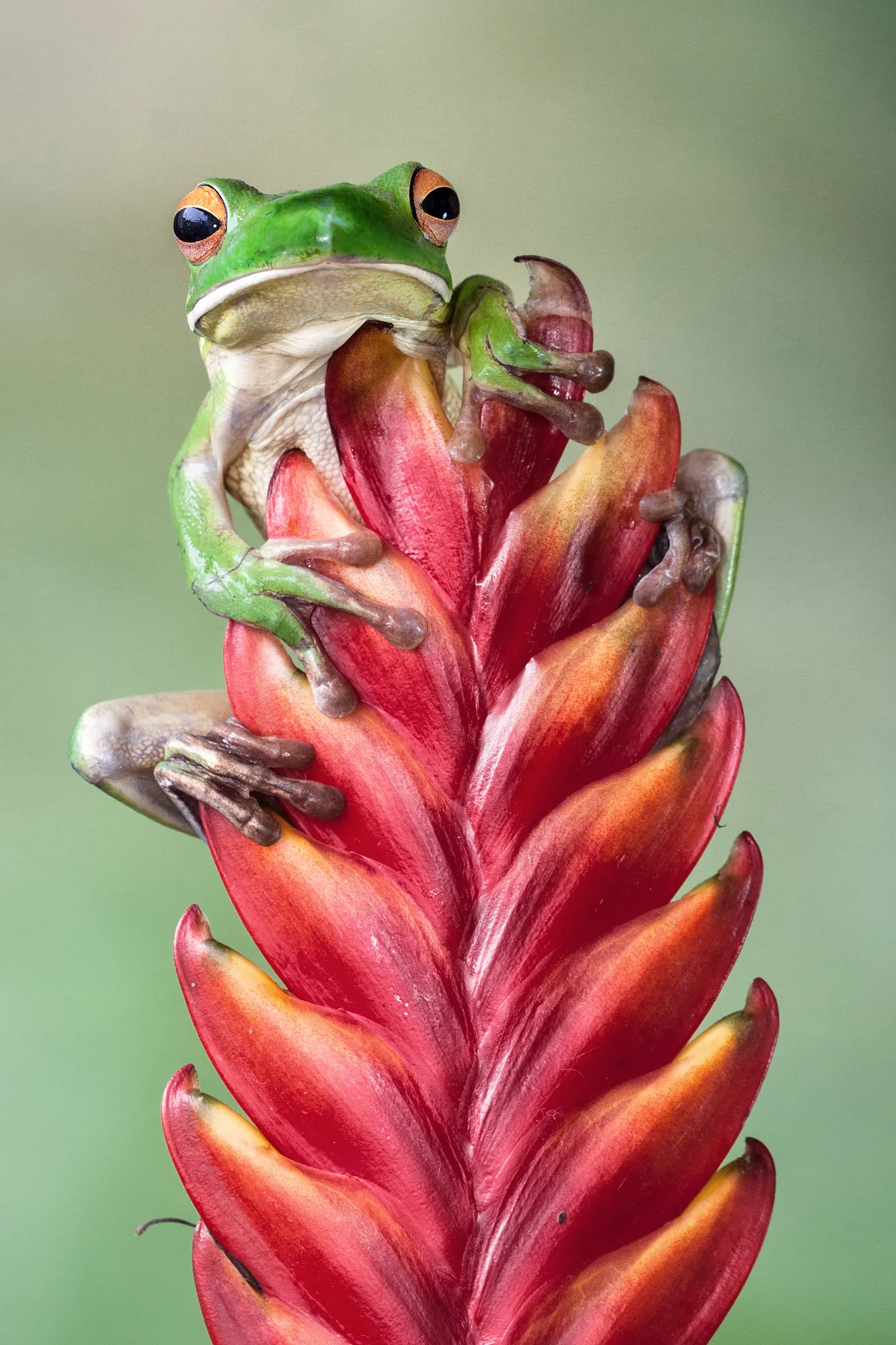 “Hello Friends”. White lips green tree frog behind the red flowers. Photo location: Jakarta. (Photo and caption by Lessy Sebastian/National Geographic Photo Contest)