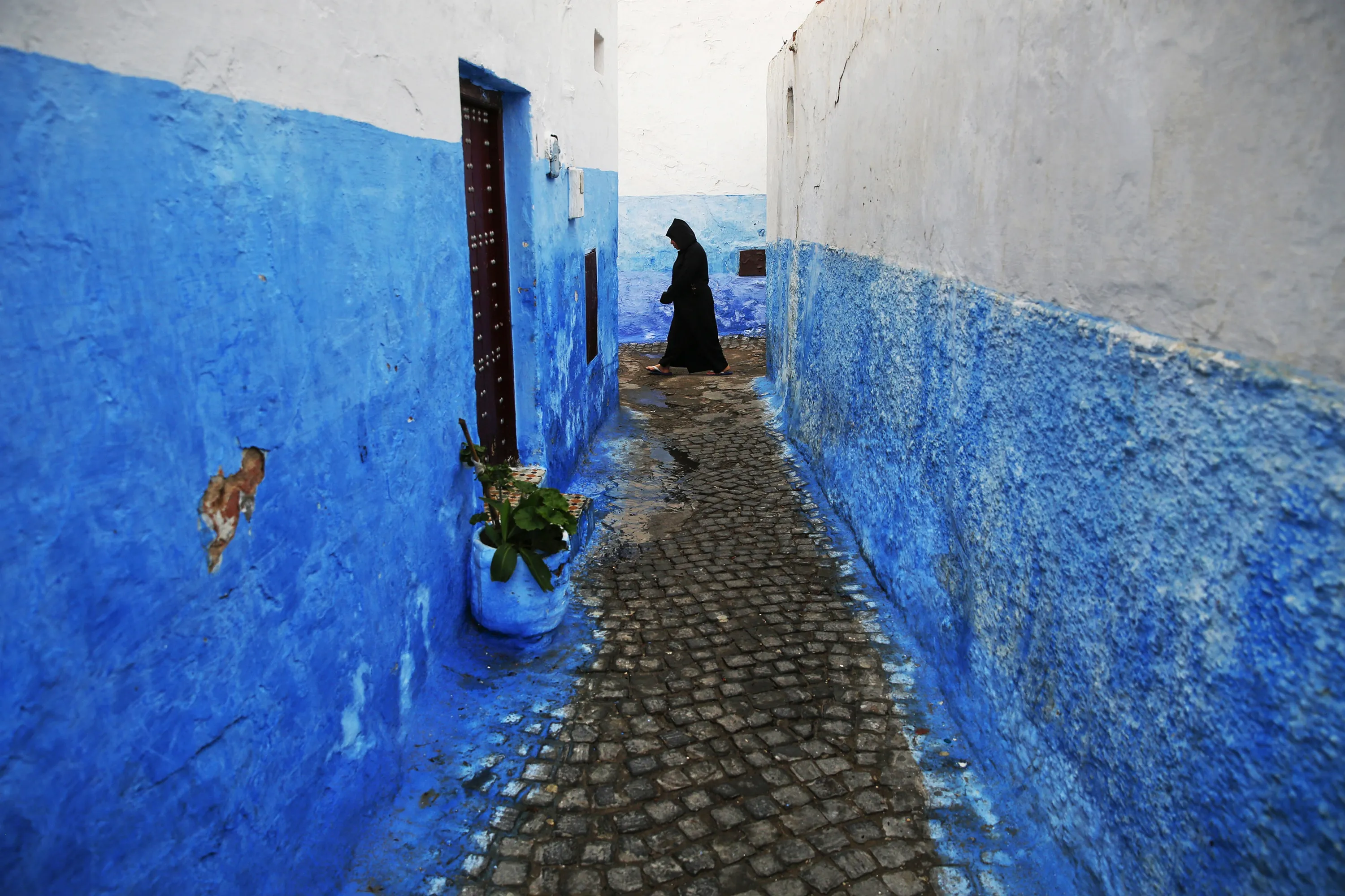 A woman makes her way between houses painted in traditional blue and white colours in Kasbah of the Udayas, a picturesque ancient part of Rabat September 21, 2014. (Photo by Damir Sagolj/Reuters)