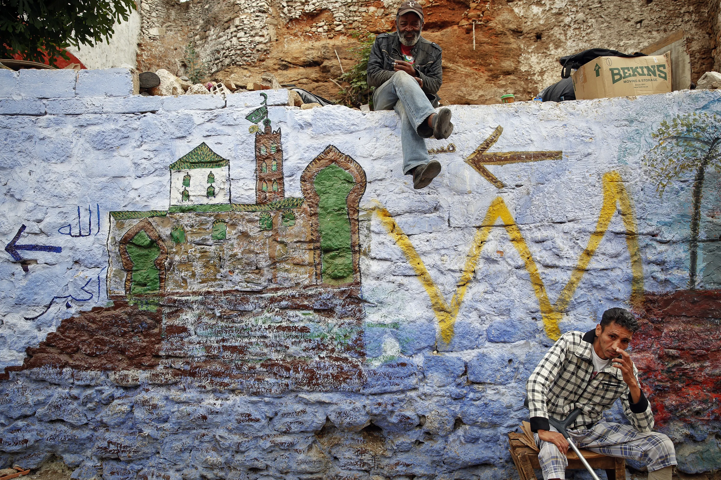 Men sit on a painted wall behind Bab el Bahr gates of Rabat's Medina September 21, 2014. (Photo by Damir Sagolj/Reuters)