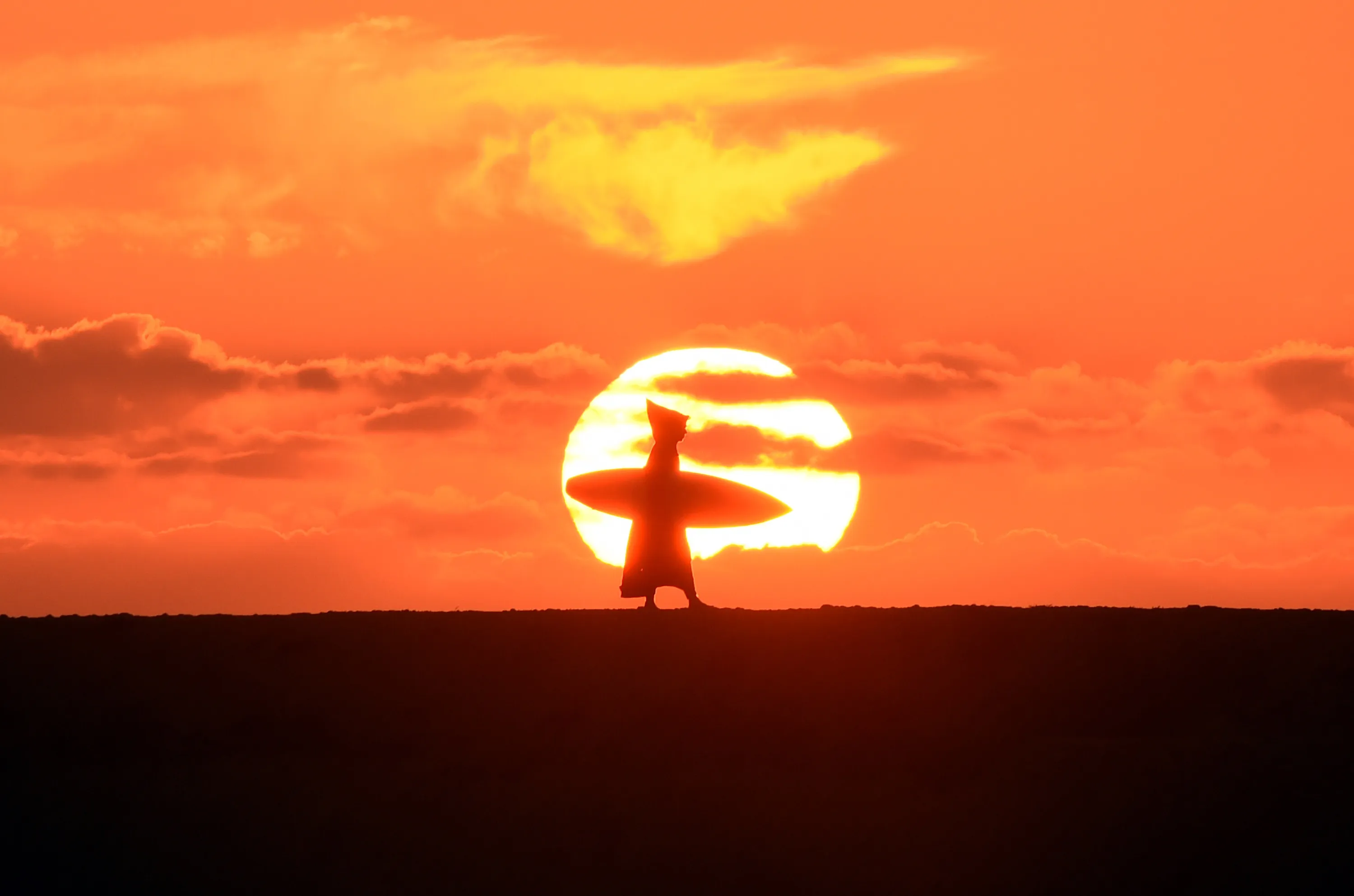 A Moroccan surfer walks along the beach as the sun sets in Oued Charrat 30 kilometres from the capital Rabat on October 7, 2014. (Photo by Fadel Senna/AFP Photo)