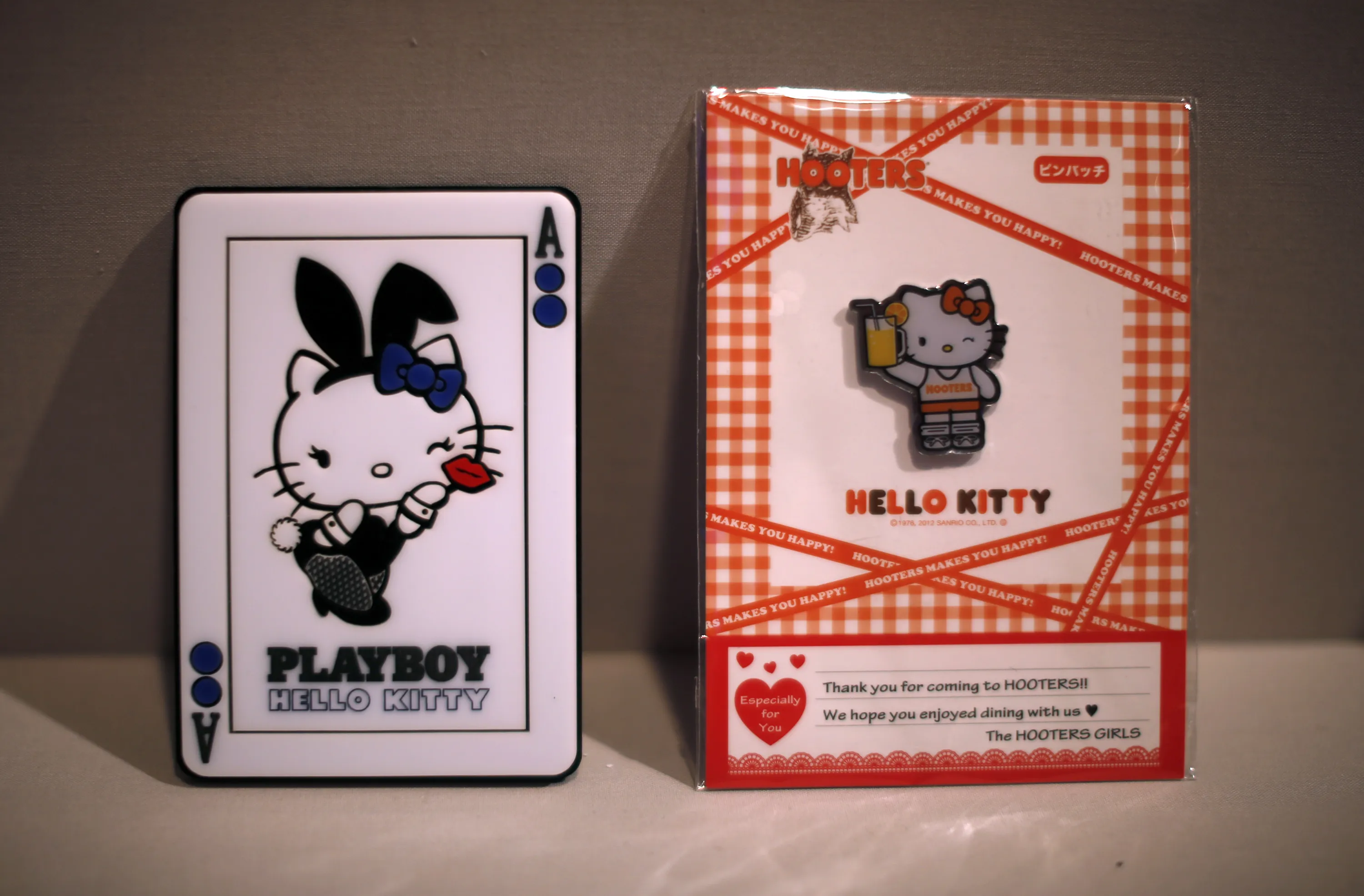 Cards depicting Hello Kitty as a Playboy bunny and a Hooters Girl are seen at the “Hello! Exploring the Supercute World of Hello Kitty” museum exhibit in honor of Hello Kitty's 40th anniversary, at the Japanese American National Museum in Los Angeles, California October 10, 2014. (Photo by Lucy Nicholson/Reuters)