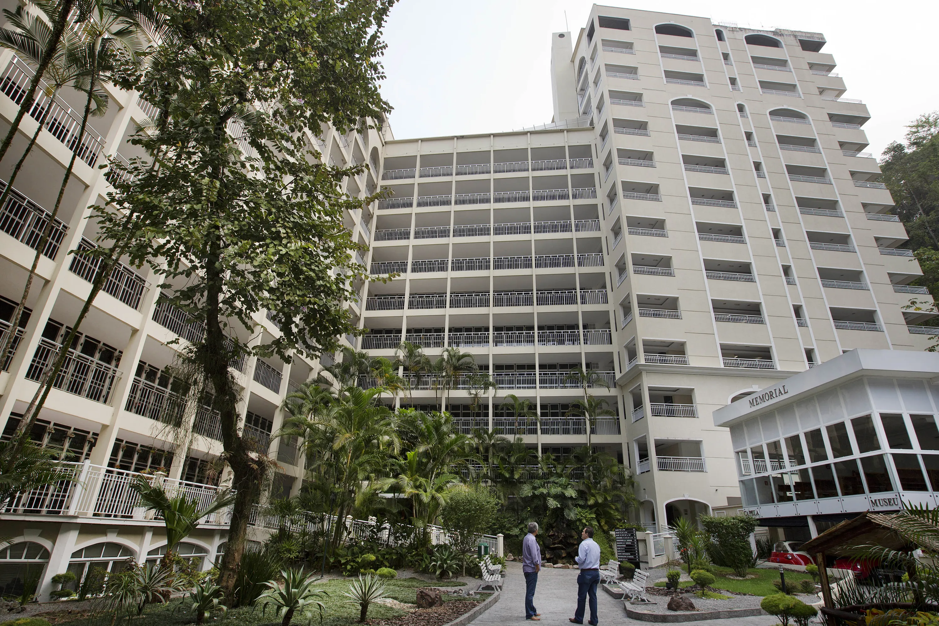 In this Oct. 13, 2014 photo, the Necropole Ecumenica Memorial stands tall in Santos, Brazil. When completed, the five building memorial known as a vertical cemetery will hold 180,000 bodies. The reality of relying on finite land resources to cope with the endless stream of the dying has brought about creative solutions. (AP Photo/Andre Penner)