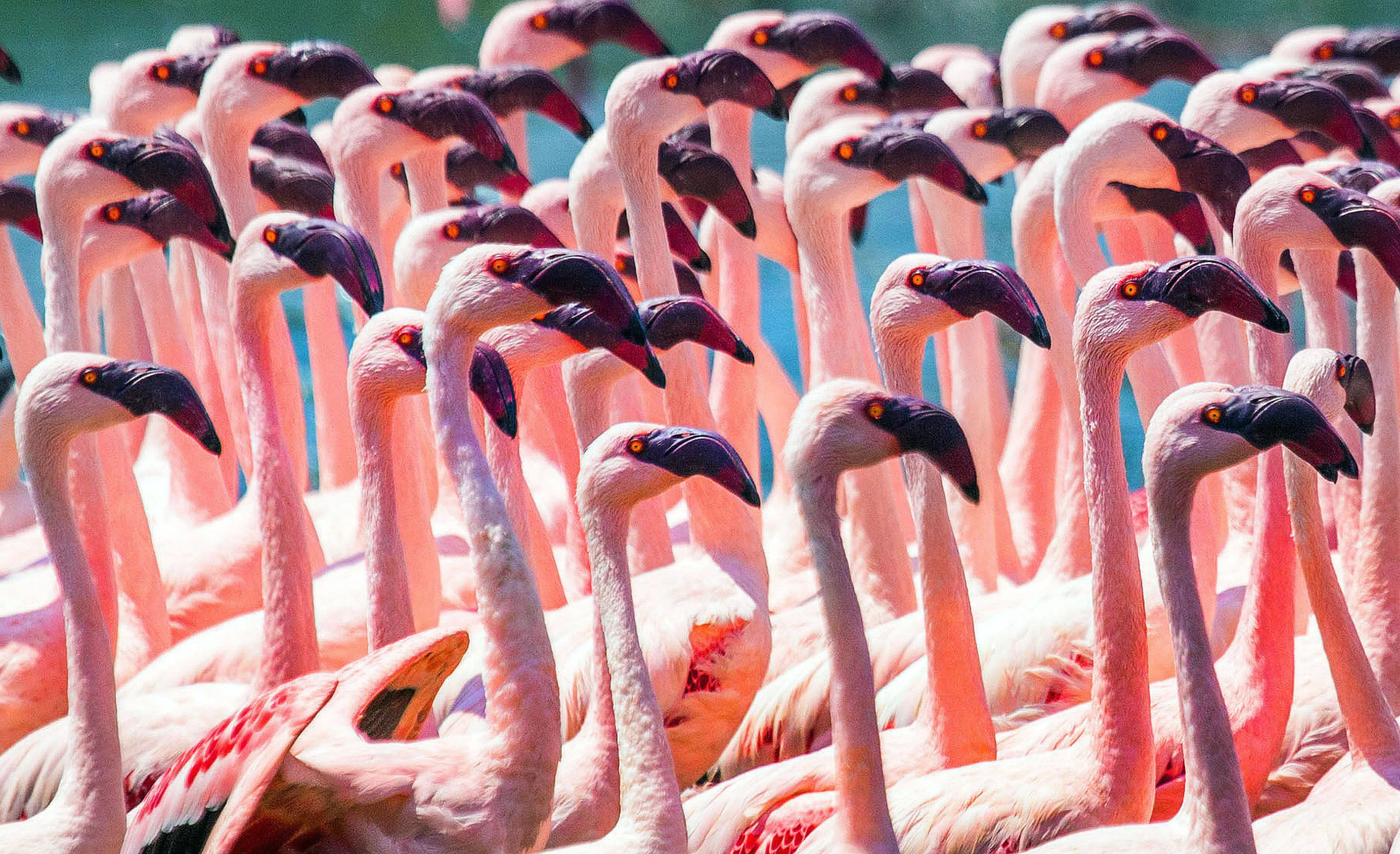 The flock of flamingos at Lake Bogoria in Kenya. Captured congregating in their thousands, the brightly coloured birds are able to transform the skyline as far as the eye can see. Known for their vivid pink plumage, the long legged waders get their unique colour from the pigmentation found in the organisms they eat. Taken by Russian photographer, Andrey Gudkov, 42, the wildlife lover visited various lakes in Africa and Brazil to photograph one of natures most stunning spectacles. In fact, during mating season, it has been known for over one million individual flamingos to appear in a single gathering. (Photo by Andrey Gudkov/Caters News)