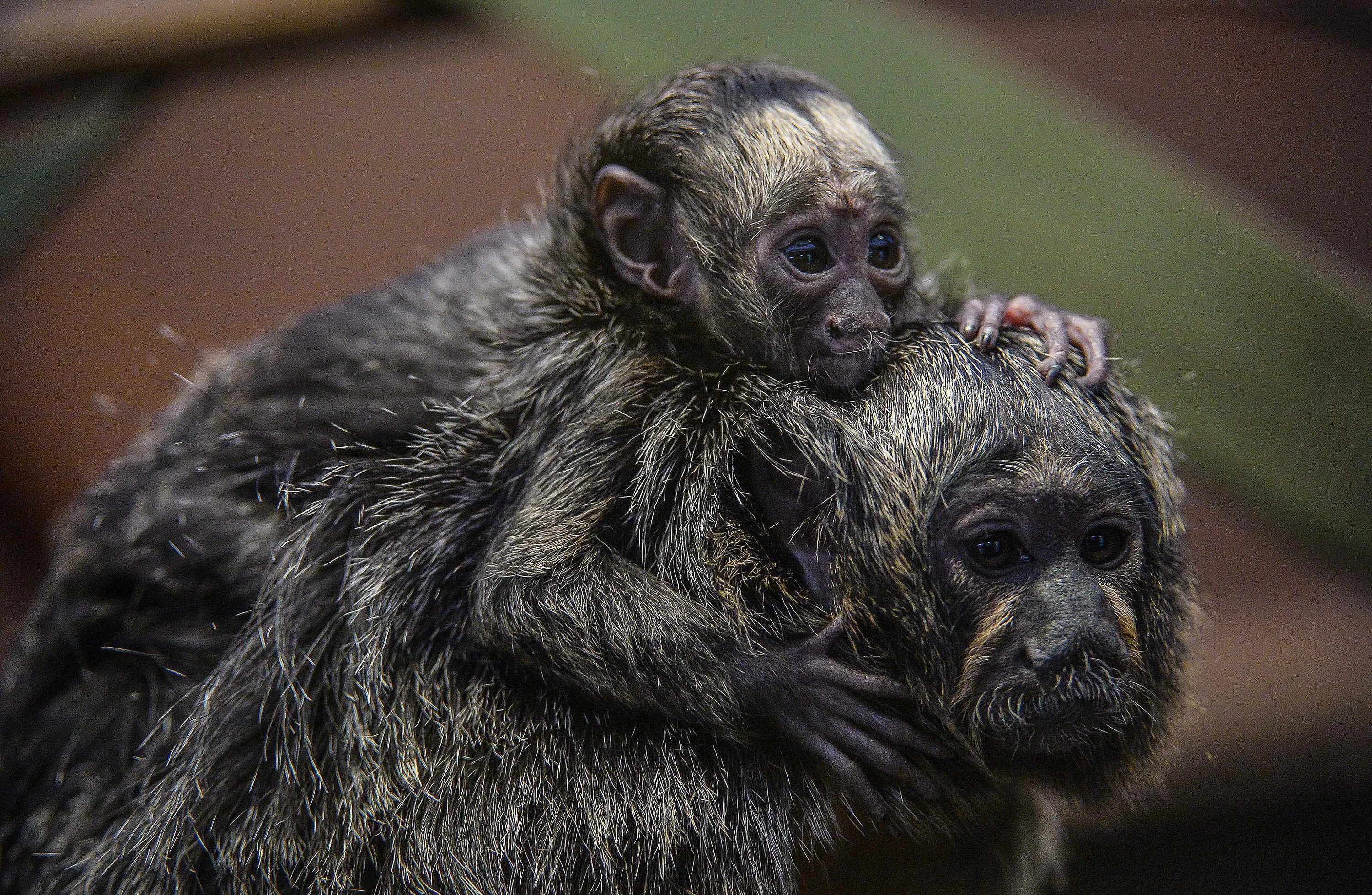 This is the adorable moment a newborn monkey hitched a ride with his mum. The six-week old Saki monkey latched on to mum Tabiti after being unveiled to visitors at Chester Zoo. Native to south America, the white-faced monkey was born on September 2 and was recently shown off to guests at the zoo. Keepers said the wide-eyed infant is taking well to its new environment and that he is being well looked after by mum Tabiti and dad Kwinti. (Photo by Chester Zoo/Mercury Press/Caters News)