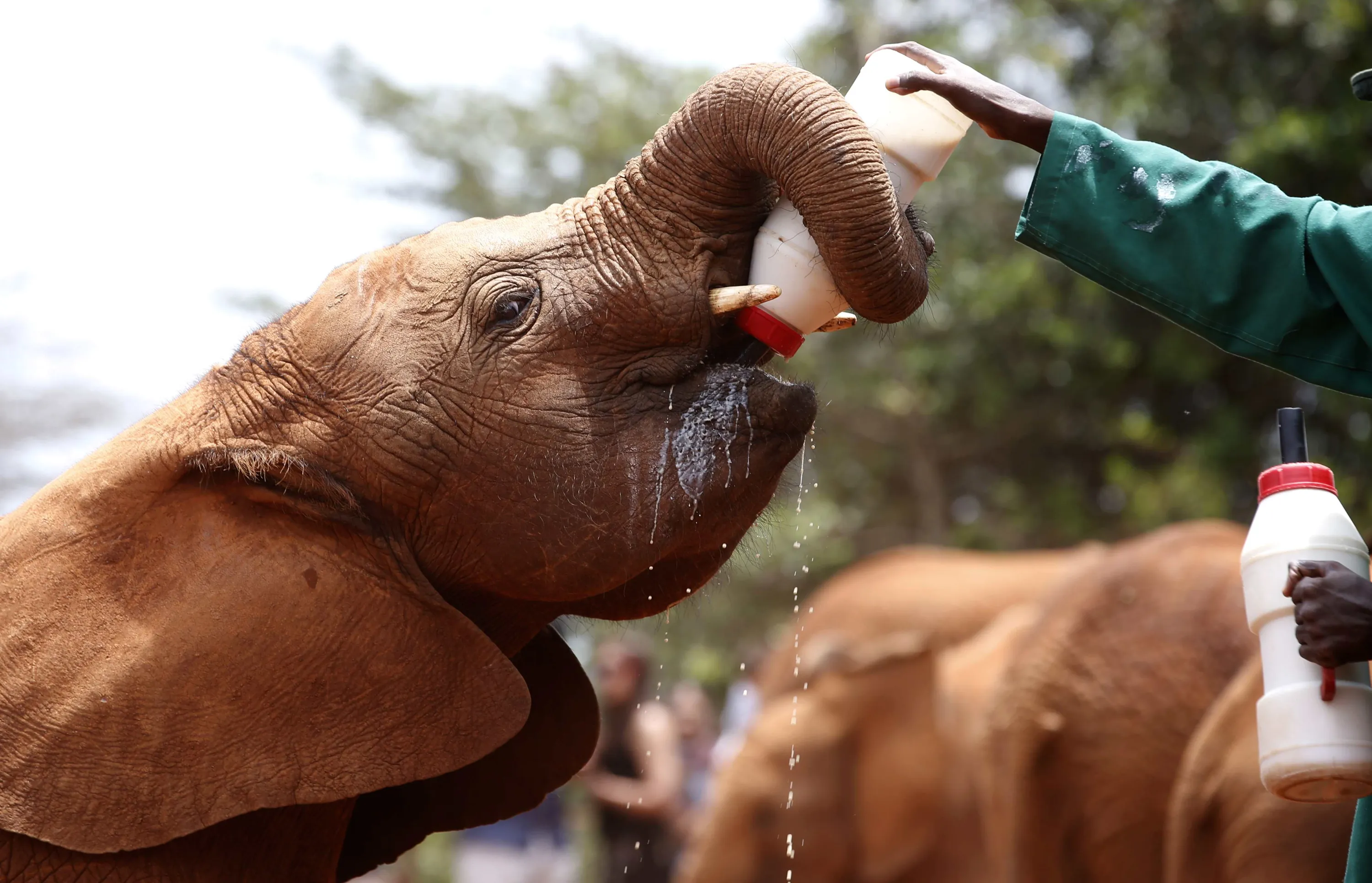 A keeper feeds an orphaned baby elephant with milk from a bottle at the David Sheldrick Elephant Orphanage within the Nairobi National Park, near Kenya's capital Nairobi October 15, 2014. (Photo by Goran Tomasevic/Reuters)