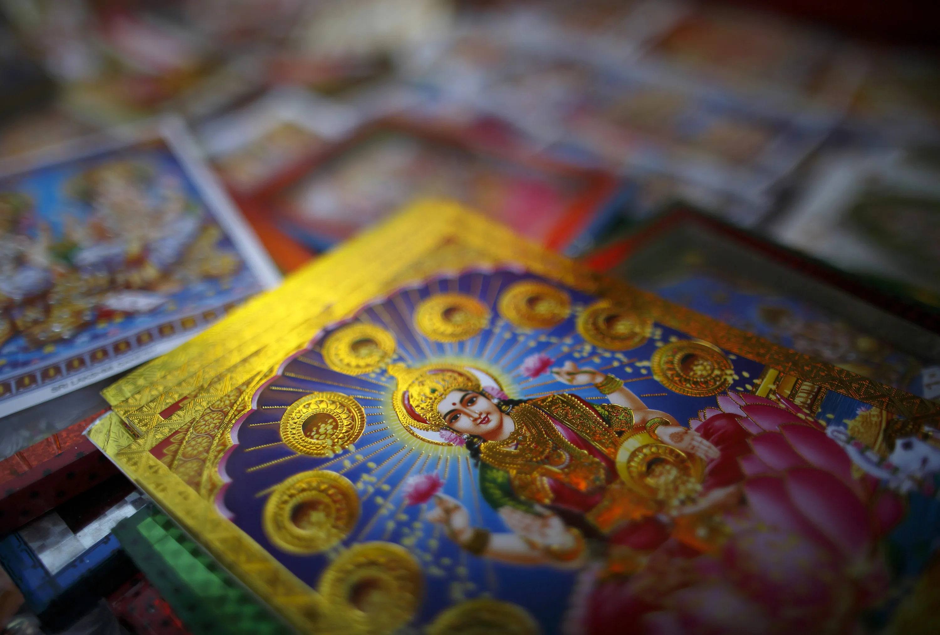 A poster of the Goddess of Wealth Laxmi which is used for worship during the Tihar festival, also called Diwali, is displayed for sale in Kathmandu October 20, 2014. (Photo by Navesh Chitrakar/Reuters)