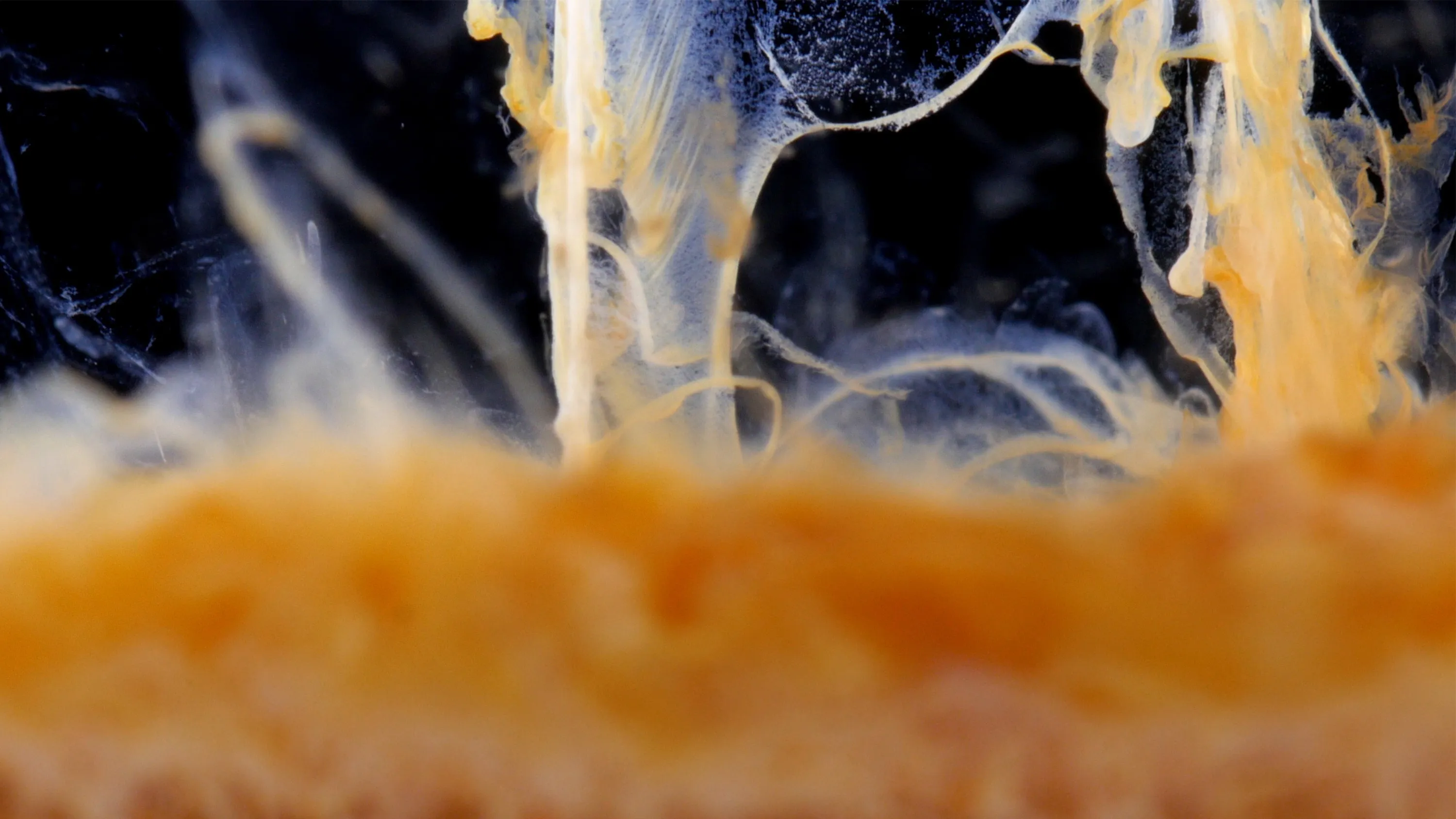 Silver thiosulfate precipitate (orange) formed after silver nitrate was added to a solution of sodium thiosulfate. (Photo by Yan Liang/Caters News)