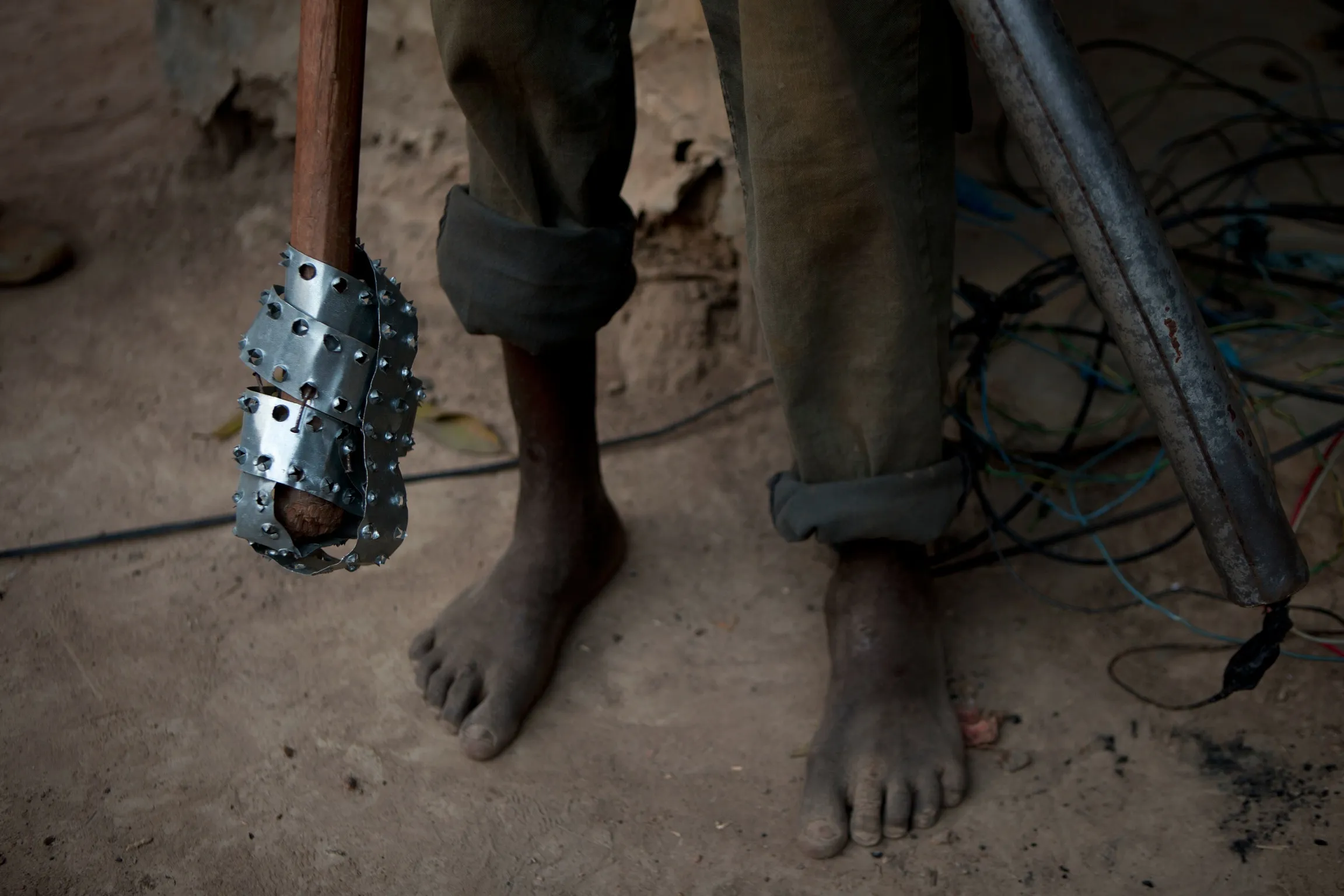 A young neighborhood resident carries makeshift weapons, as he returns from a camp for the displaced at Mpoko Airport to fetch household goods from the Garaba neighborhood, in Bangui, Central African Republic, on New Year's Day, Wednesday, January 1, 2014. (Photo by Rebecca Blackwell/AP Photo)
