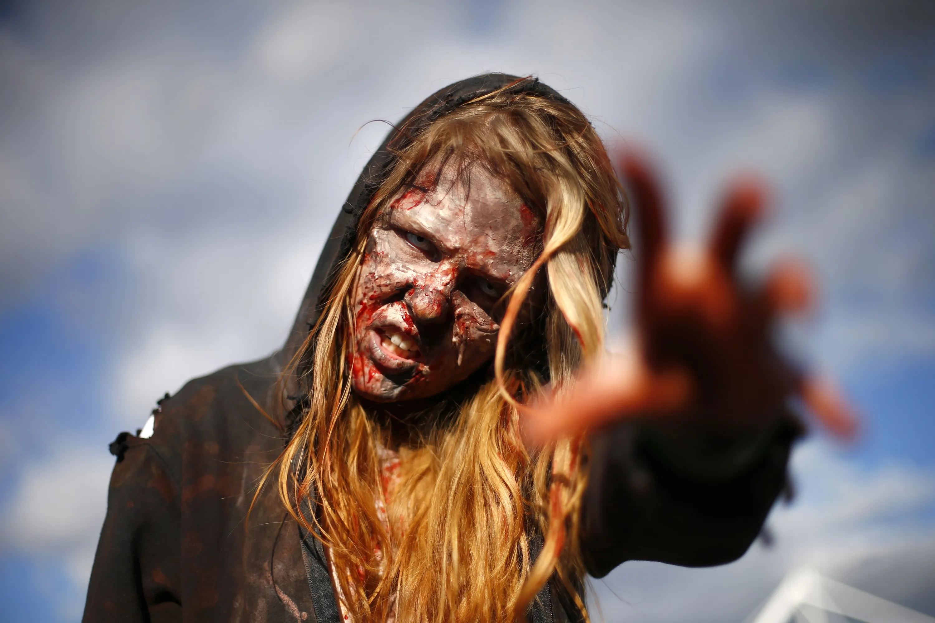 Marie, dressed as a zombie, poses outside the MCM Comicon at the Excel Centre in East London, October 25, 2014. (Photo by Andrew Winning/Reuters)