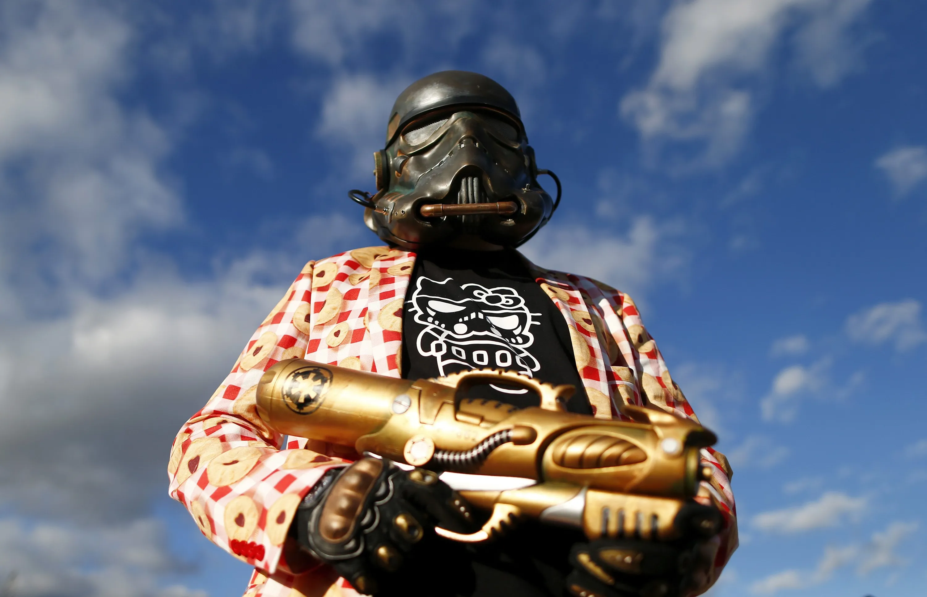 Martin poses as a steampunk Stormtrooper outside the MCM Comic Con at the Excel Centre in East London, October 25, 2014. (Photo by Andrew Winning/Reuters)