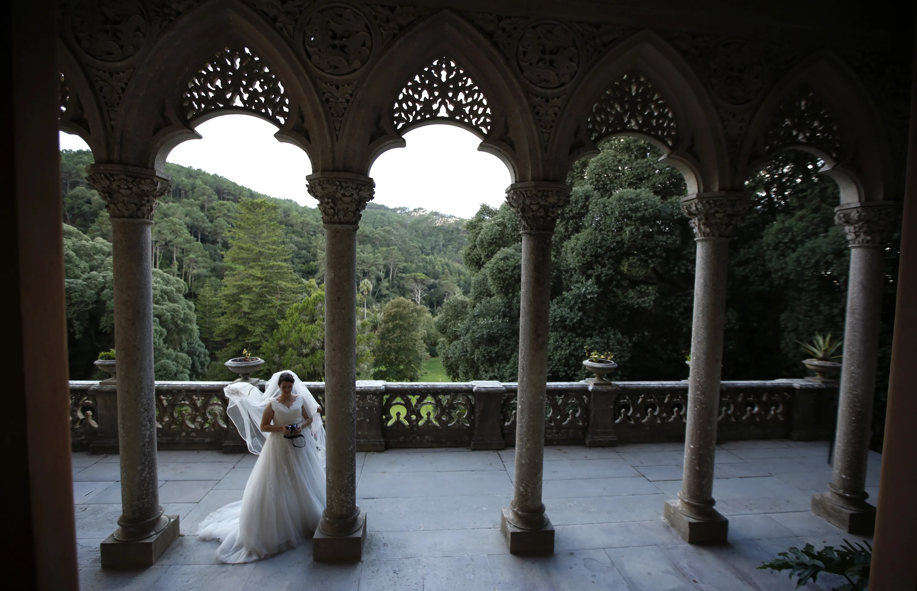 A woman wearing a wedding dress is photographed at Monserrate Palace in Sintra October 7, 2014. Sintra became the first centre of European Romantic architecture in the 19th century, which influenced the development of landscape architecture throughout Europe. It was classified as a World Heritage Site by UNESCO in 1995. Its monuments are visited by more than 1.5 million of tourists every year, according to local media. (Photo by Rafael Marchante/Reuters)
