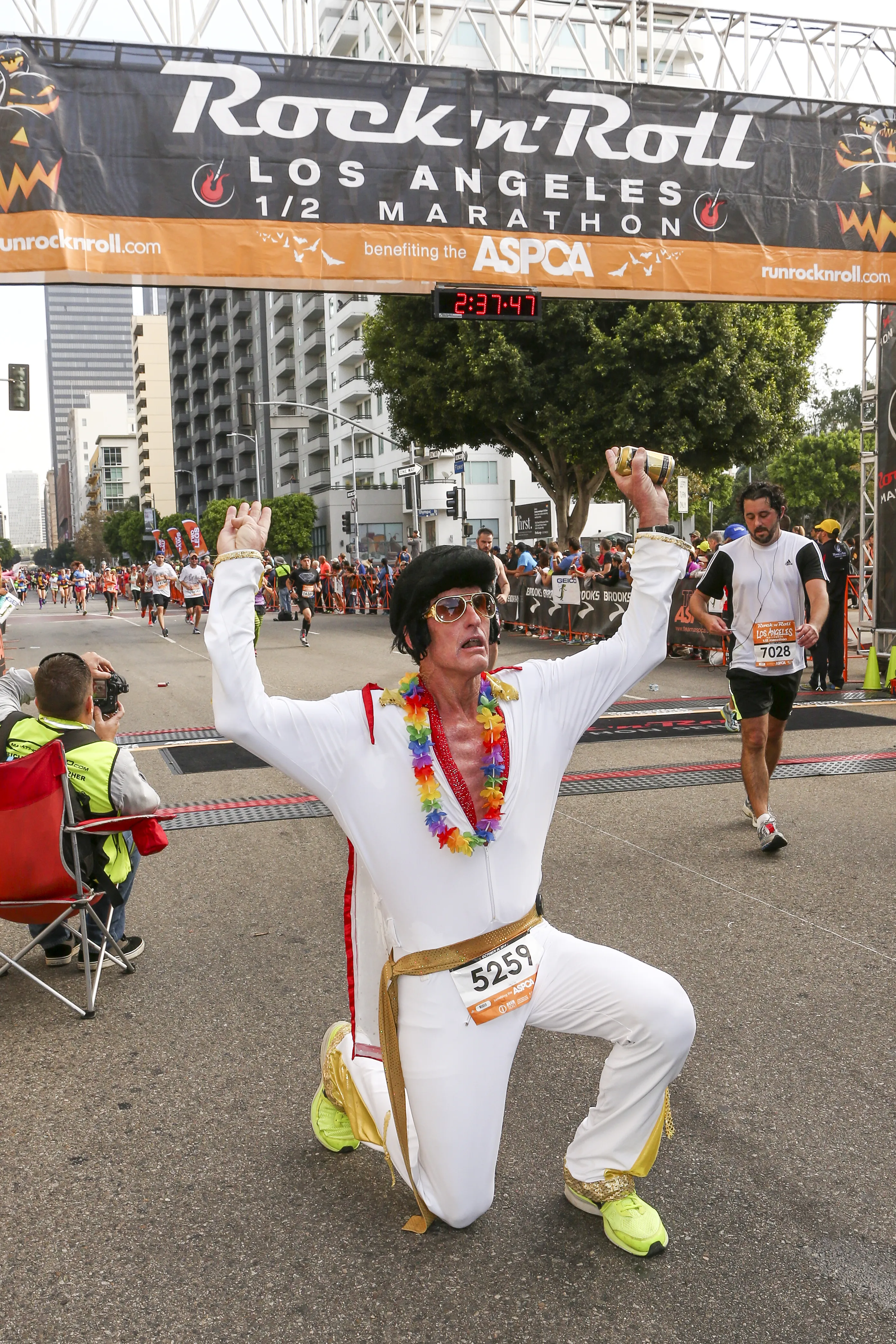 General view of a runner at the finish line at the Rock 'n' Roll Los Angeles Halloween Half-Marathon and 5K benefitting the ASPCA on October 26, 2014 in Los Angeles, California. (Photo by Rich Polk/Getty Images for CGI)