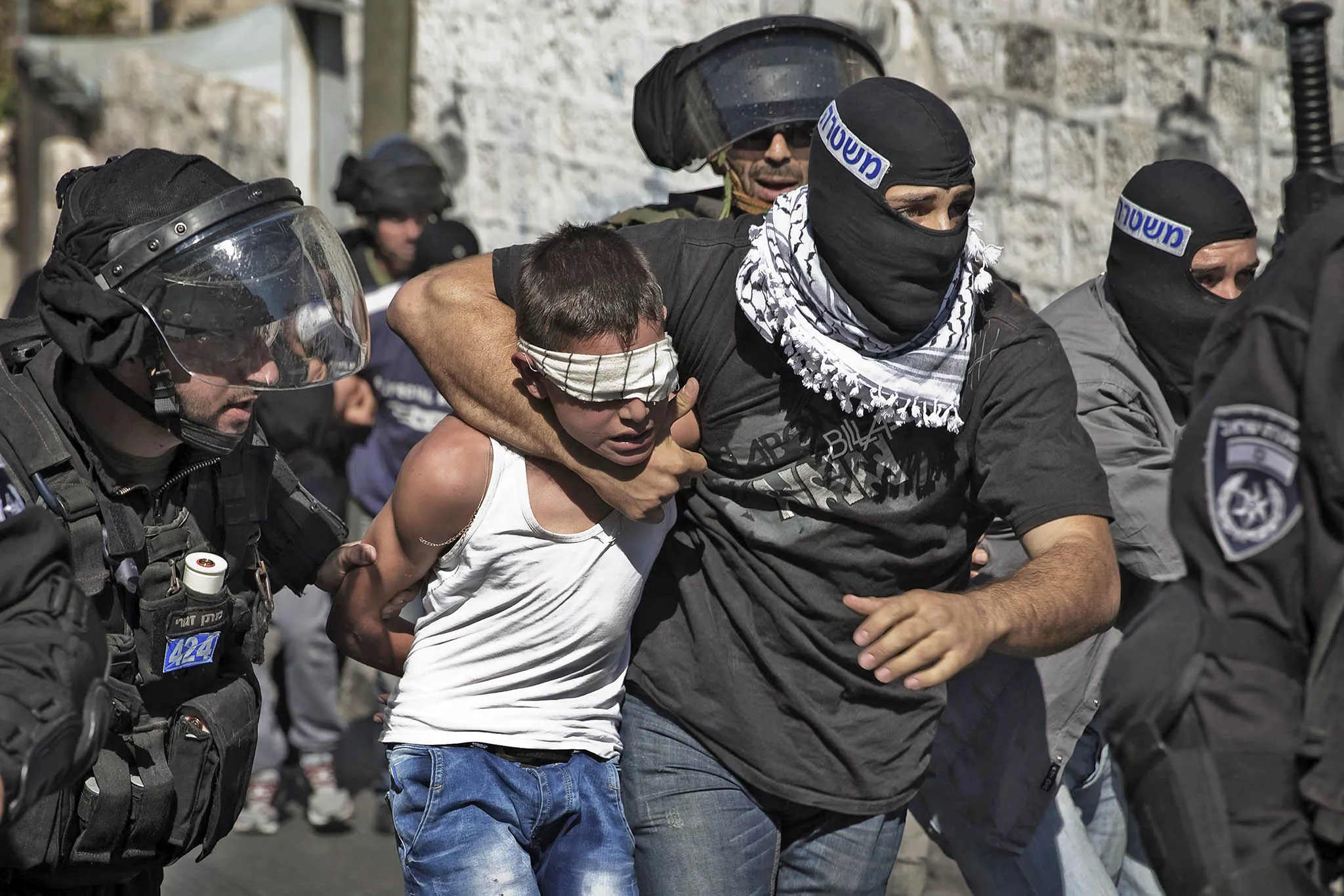 Israeli police detain a Palestinian youth following clashes after Friday prayers in the East Jerusalem neighbourhood of Wadi al-Joz October 24, 2014. Tension in Jerusalem rose on Wednesday after an Israeli baby died and eight other people were hurt when a Palestinian man slammed his car into pedestrians at a Jerusalem light railway stop. Police shot the driver as he fled. A hospital official said the driver later died of his injuries. (Photo by Finbarr O'Reilly/Reuters)