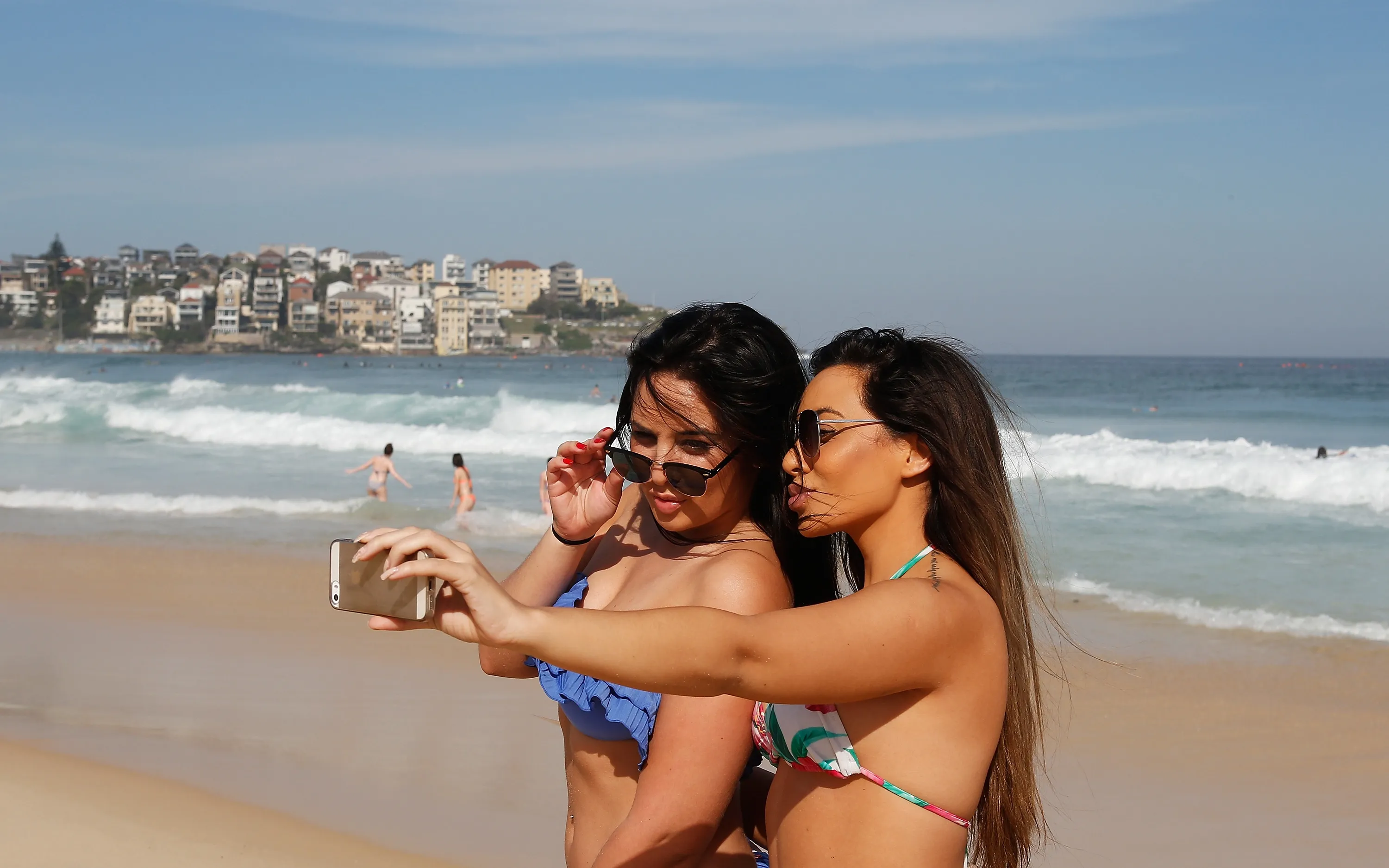 Friends take a selfie as they enjoy the warm weather down at Bondi Beach on October 31, 2014 in Sydney, Australia. Australia is expecting much hotter temperatures than usual for the next three months. (Photo by Daniel Munoz/Getty Images)