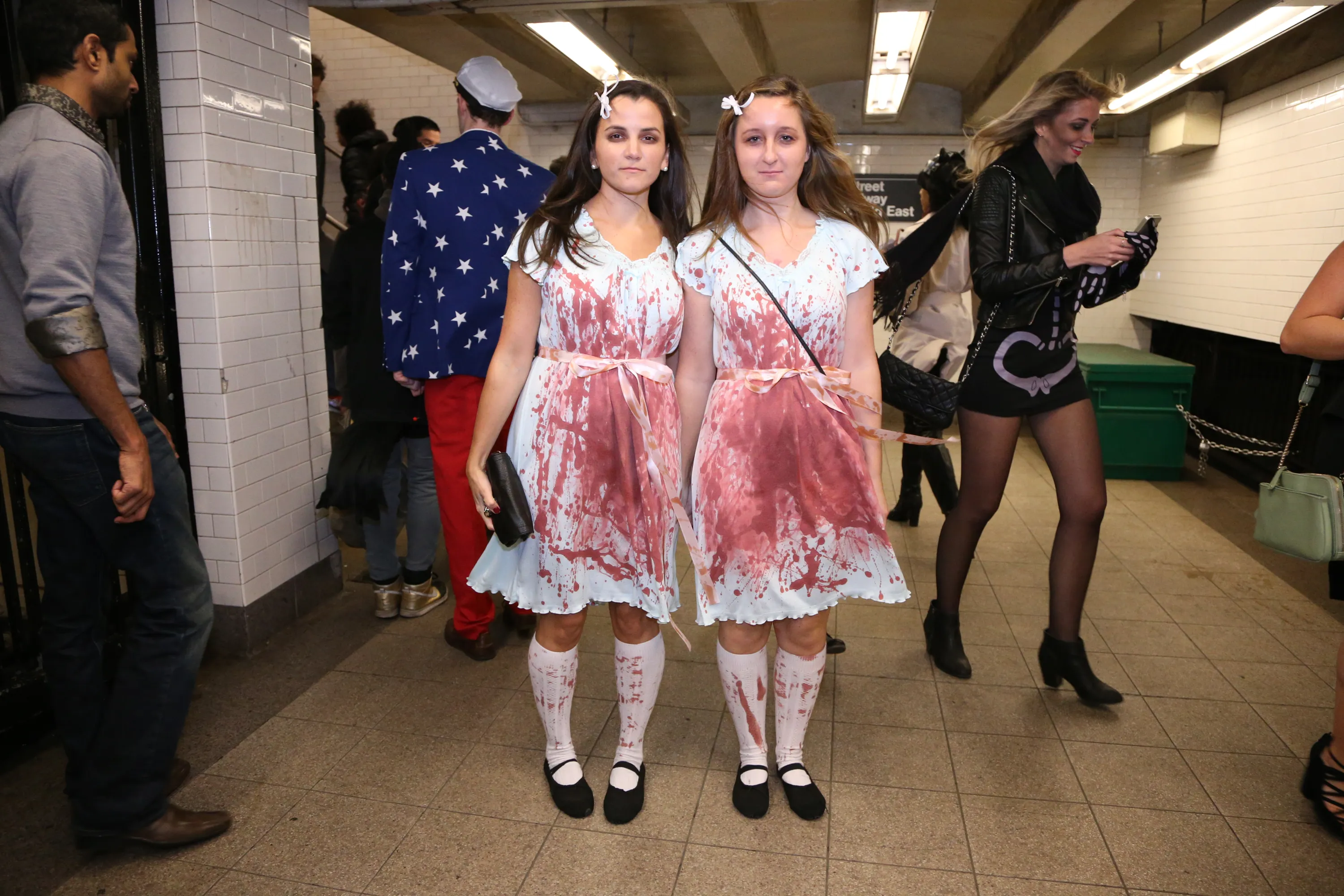 Two young dressed as sisters from teh The Shining head to the 41st annual Village Halloween Parade in New York City, Friday, October 31, 2014. (Photo by Gordon Donovan/Yahoo News)