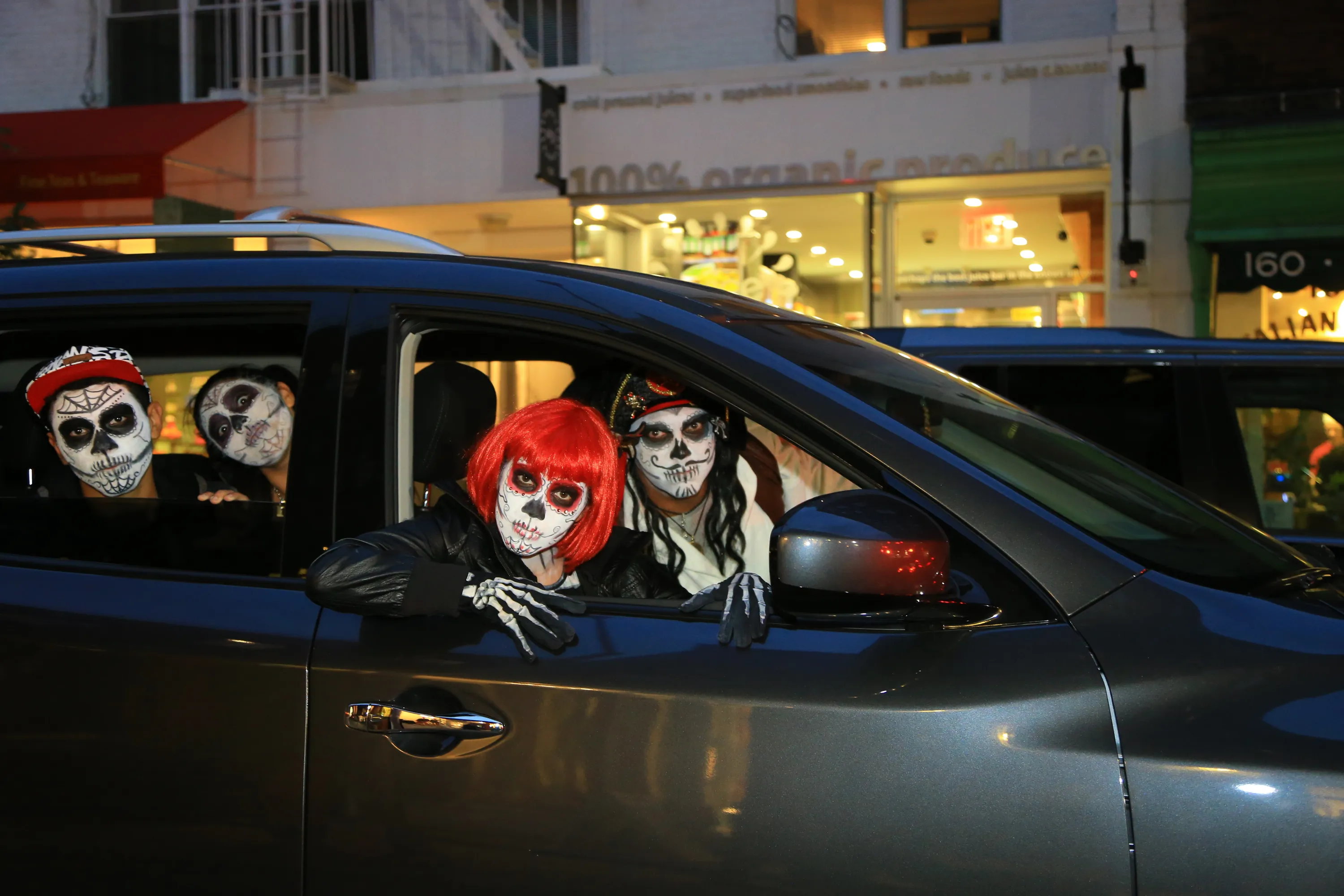 A group of youngsters dressed as ghouls and zombies head to the 41st annual Village Halloween Parade in New York City, Friday, October 31, 2014. (Photo by Gordon Donovan/Yahoo News)