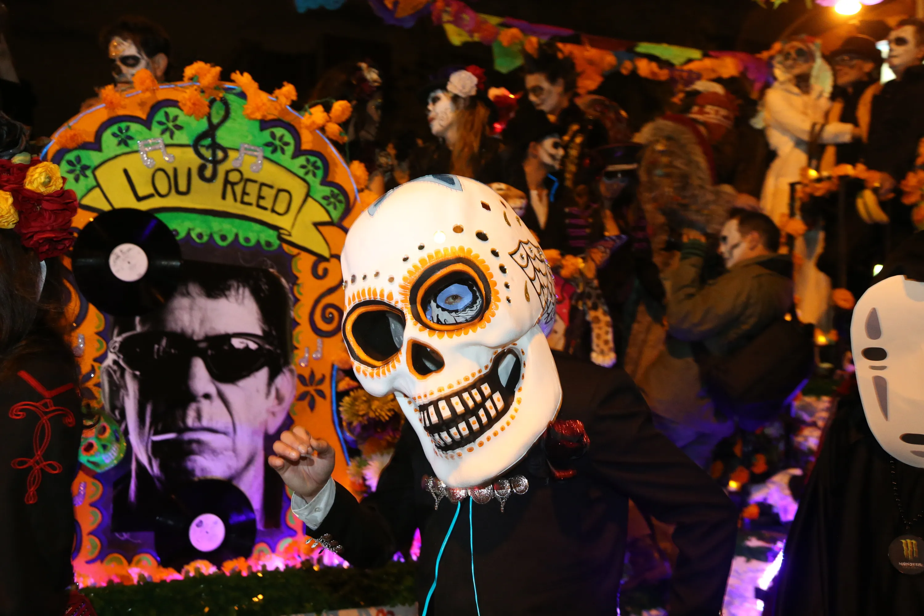 People dressed in ghouls on a float head up Sixth Avenue in the 41st annual Village Halloween Parade in New York City, Friday, October 31, 2014. (Photo by Gordon Donovan/Yahoo News)