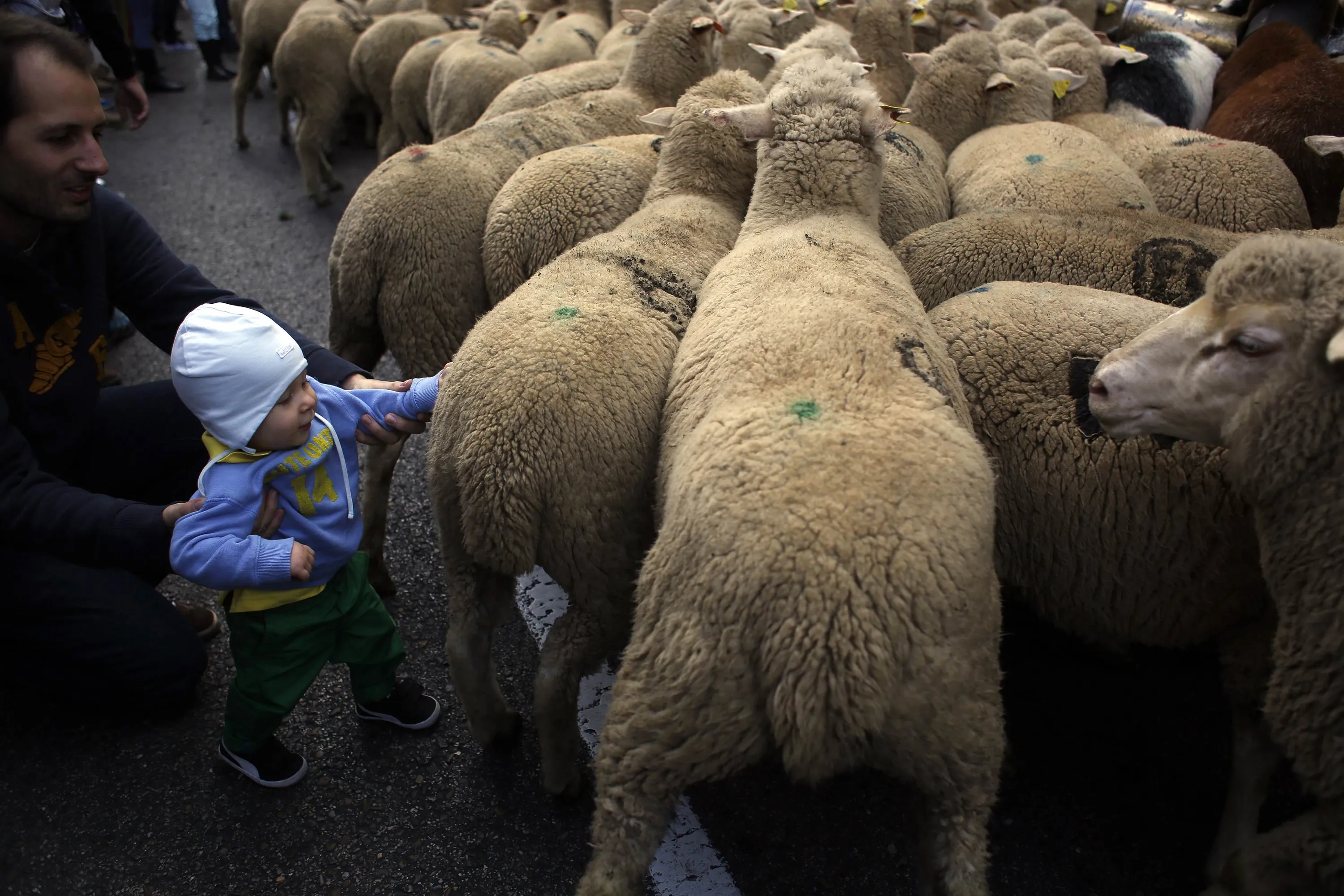 A child touches the sheep during the annual sheep parade through Madrid November 2, 2014. (Photo by Susana Vera/Reuters)