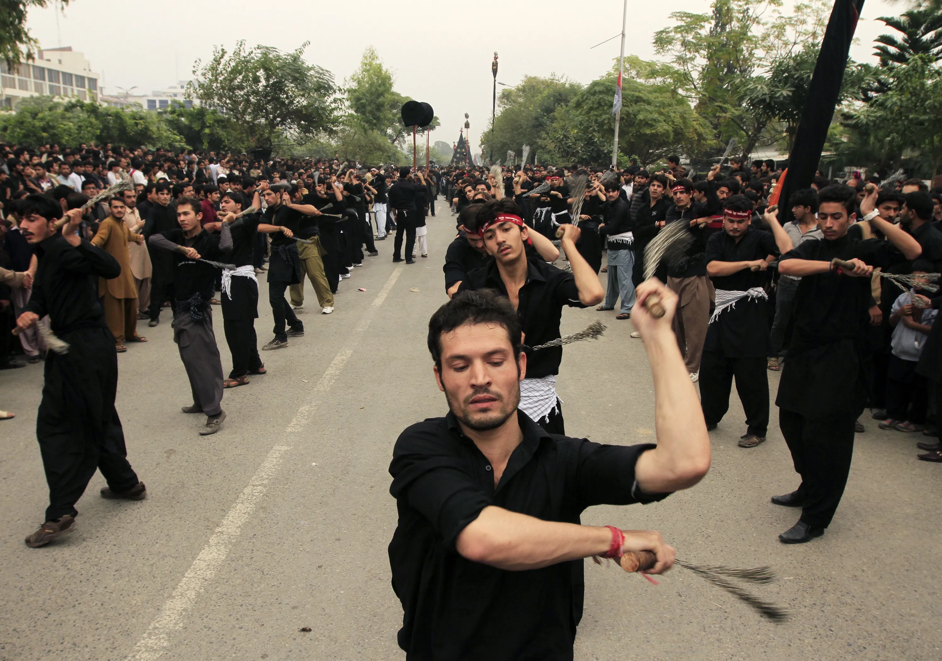 Pakistani Shi'ite Muslim men flagellate themselves during a Muharram procession in Islamabad November 3, 2014. (Photo by Faisal Mahmood/Reuters)