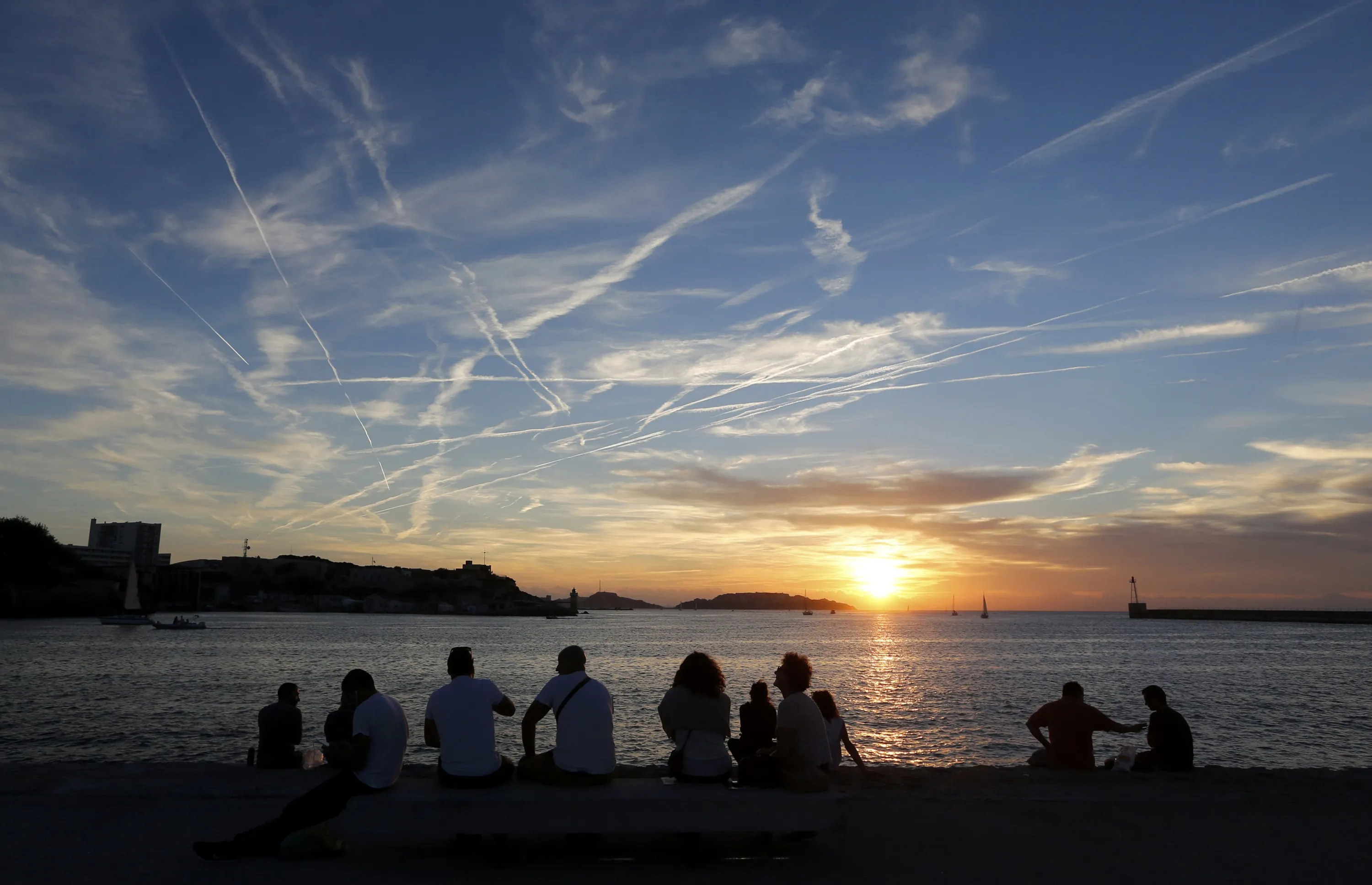 Clouds fill the sky as people watch the setting sun at on a warm autumn day in Marseille October 18, 2014. (Photo by Jean-Paul Pelissier/Reuters)