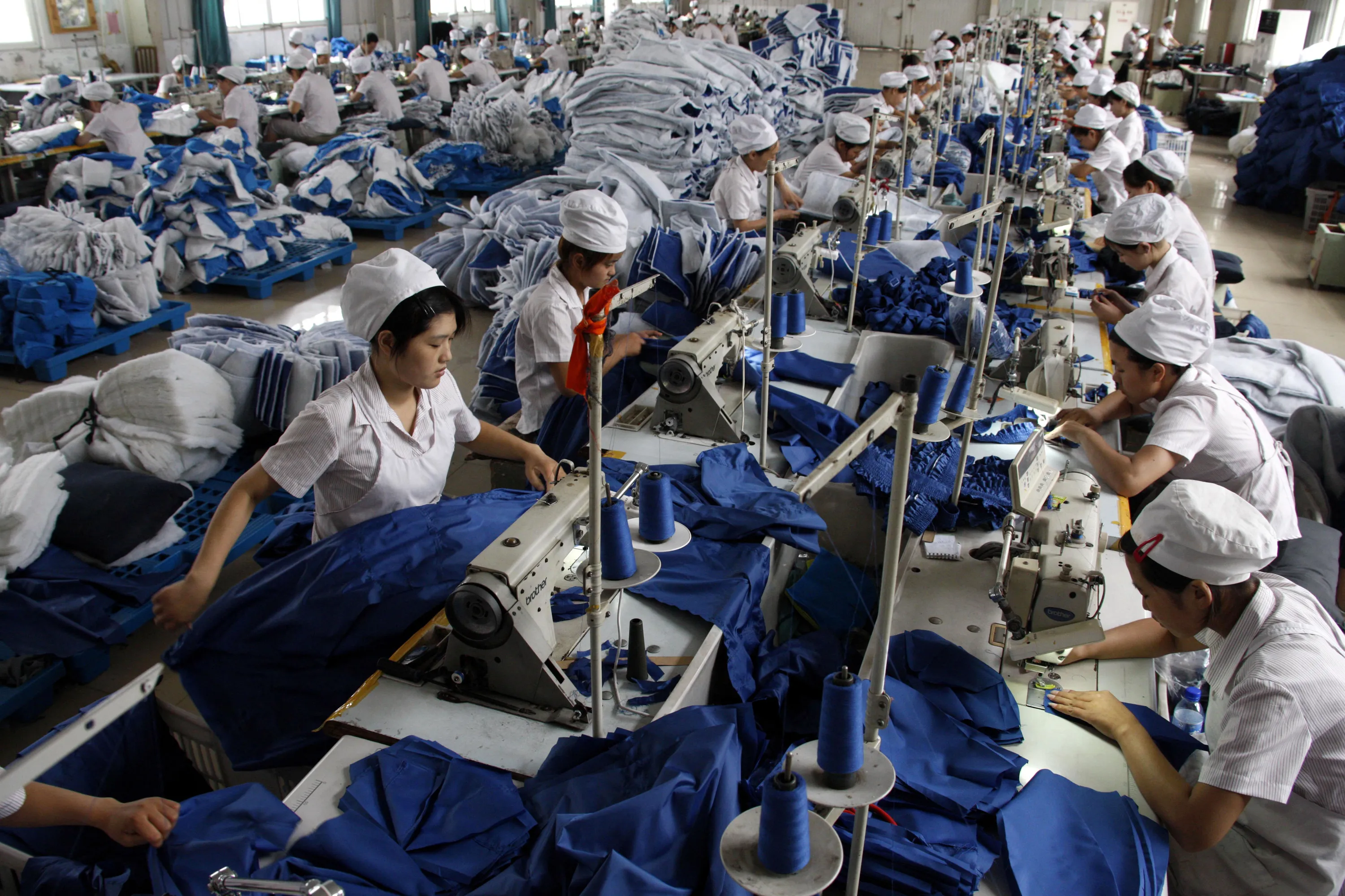 A production line of a garment factory in Huaibei, Anhui province. (Photo by Reuters/Stringer Shanghai)
