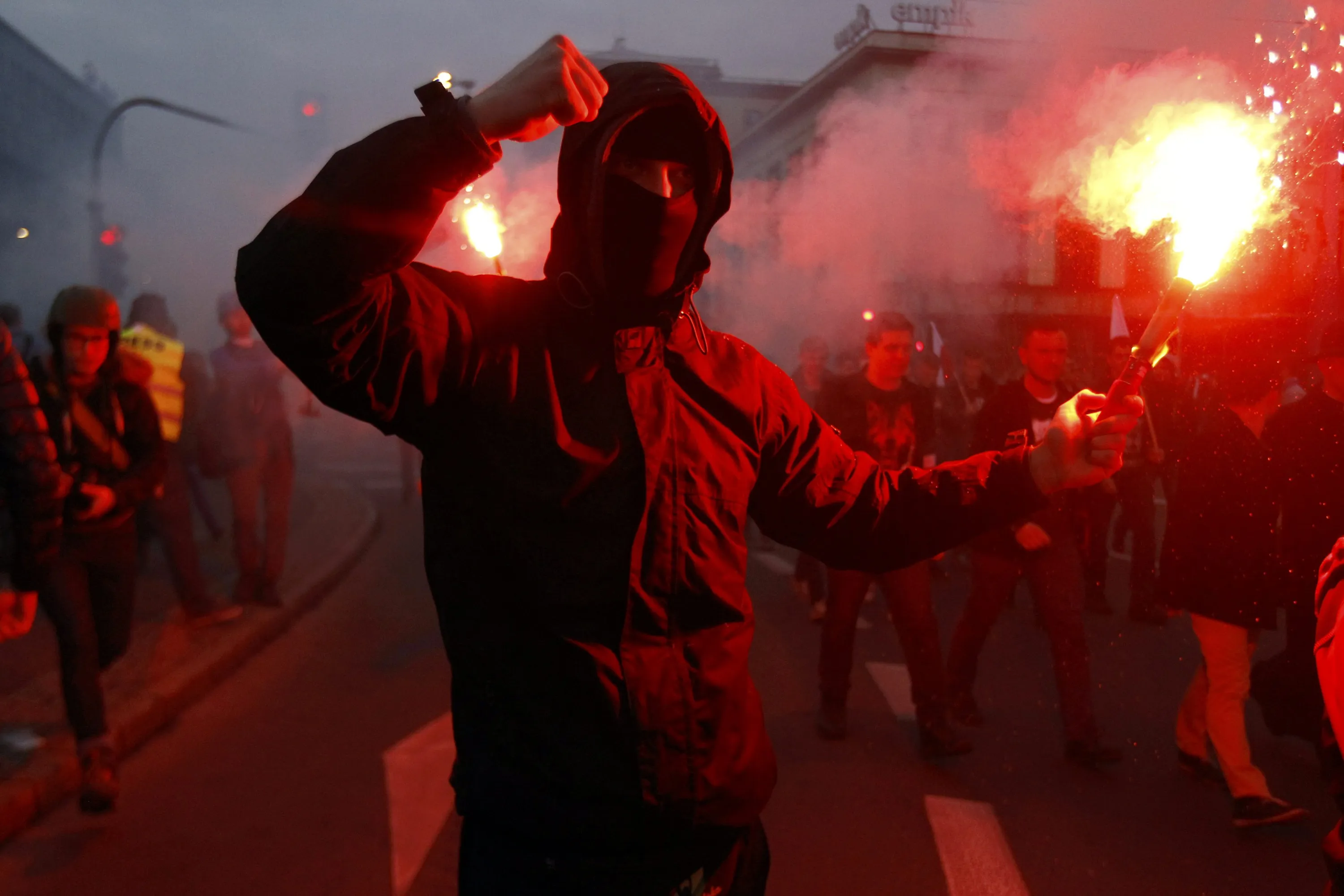 A far-right protester holds a flare during the annual far-right rally, which coincides with Poland's National Independence Day in Warsaw November 11, 2014. (Photo by Kacper Pempel/Reuters)