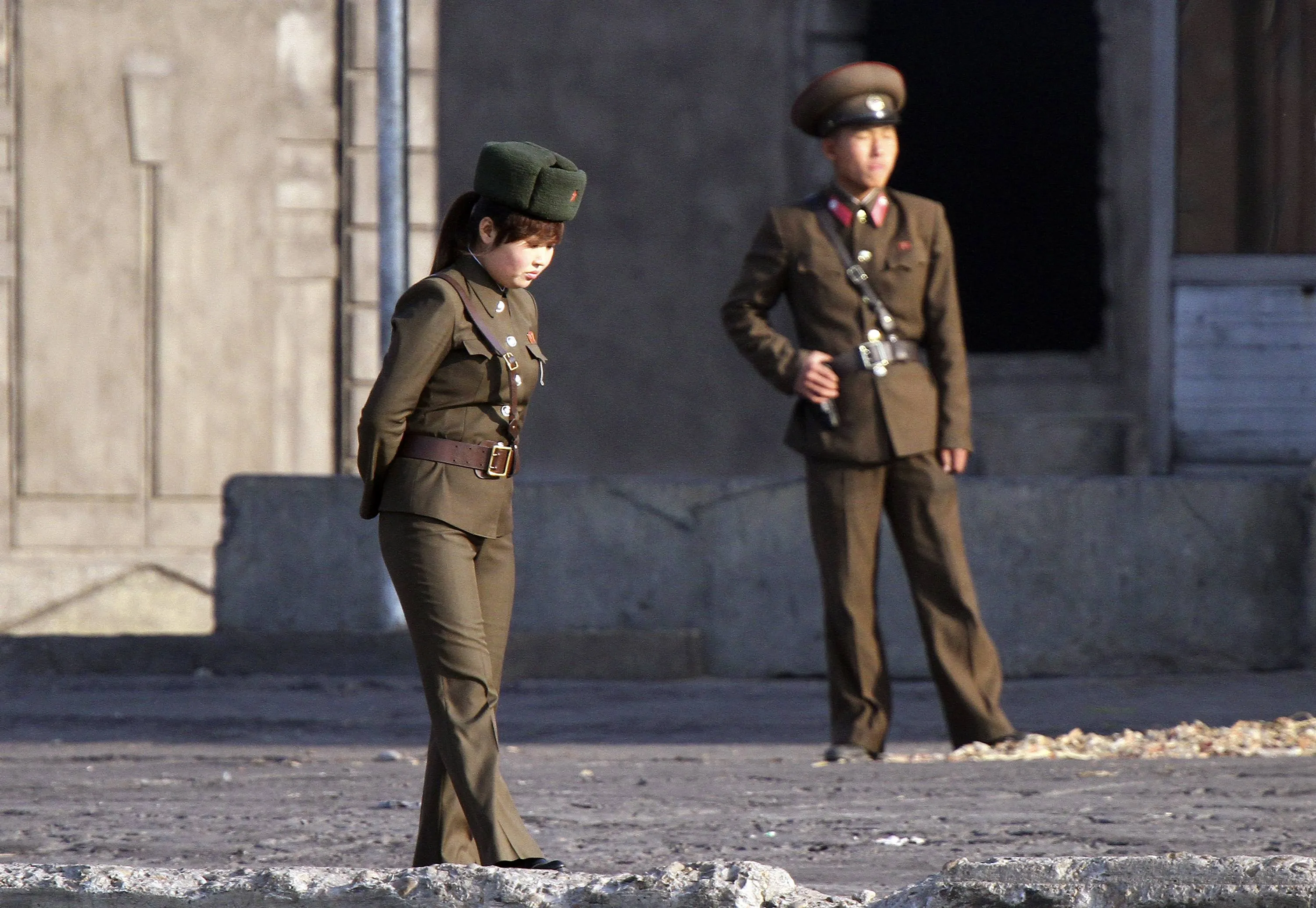 North Korean soldiers stand guard along the banks of the Yalu River near the North Korean town of Sinuiju, opposite the Chinese border city of Dandong, November 11, 2014. (Photo by Jacky Chen/Reuters)