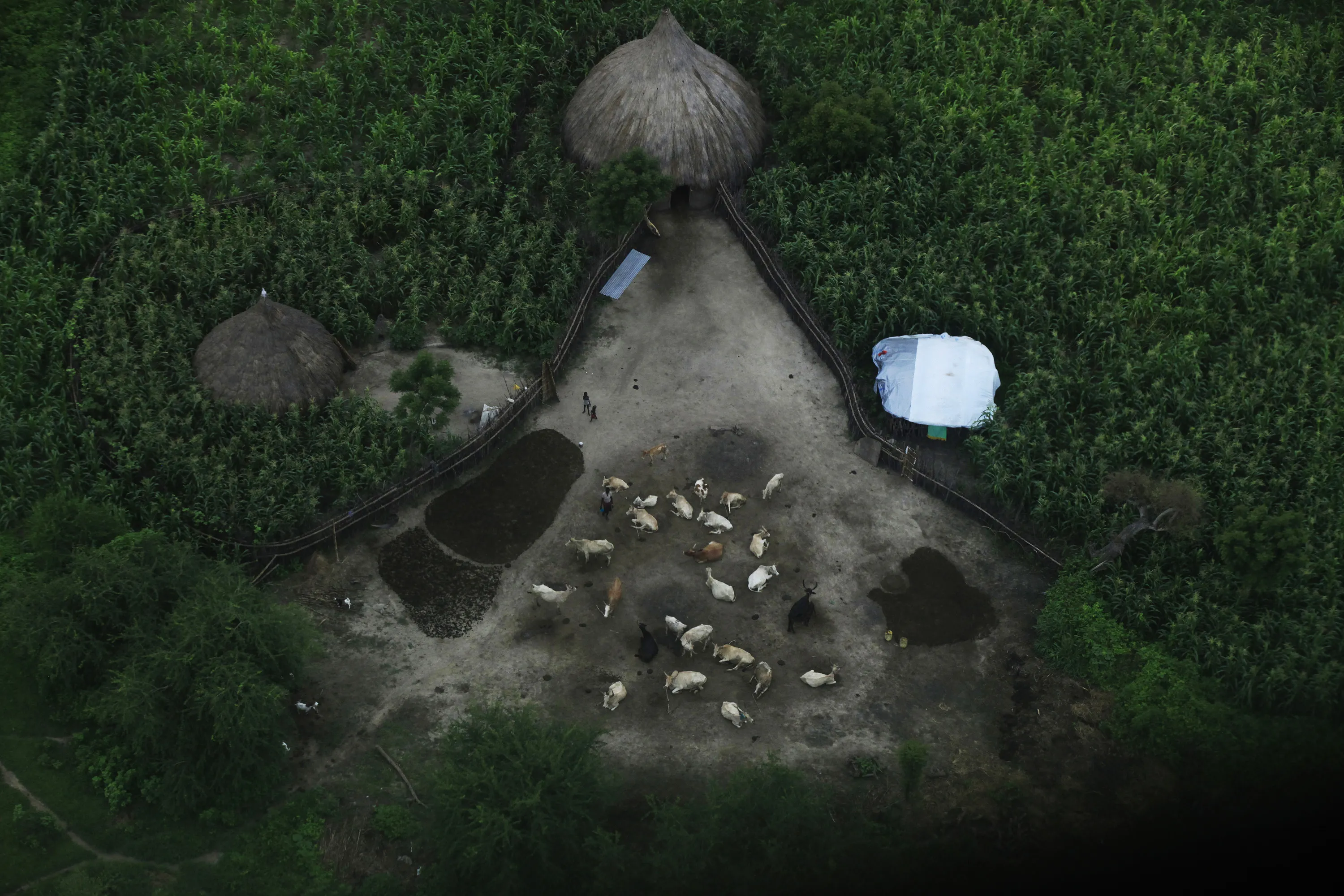 An aerial view of a house in its compound in Leer, Unity State, South Sudan. (Photo by Andreea Campeanu/Reuters)