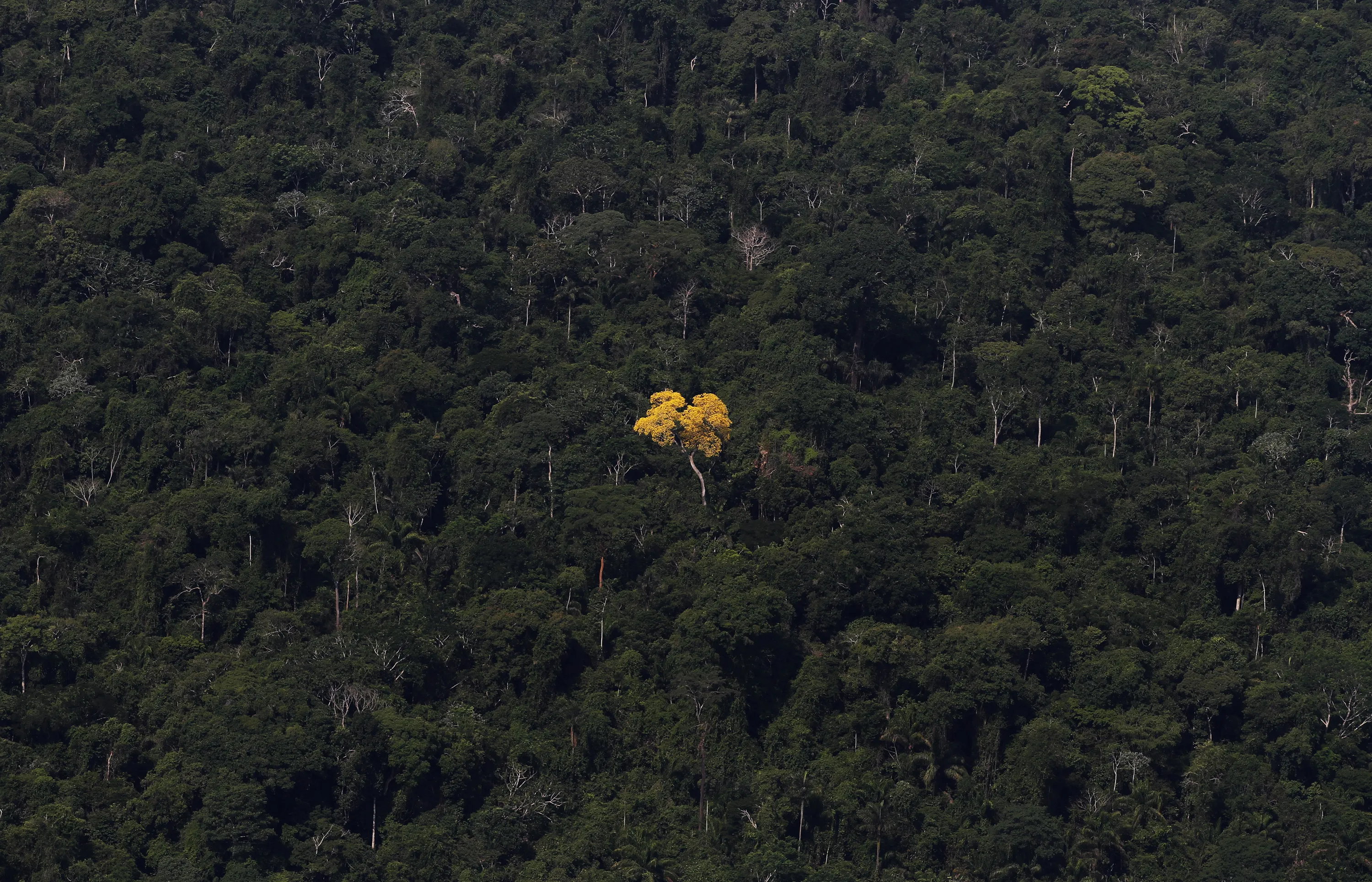 An ipe (lapacho) tree is seen in this aerial view of the Amazon rainforest near the city of Novo Progresso, Para State, Brazil. (Photo by Nacho Doce/Reuters)