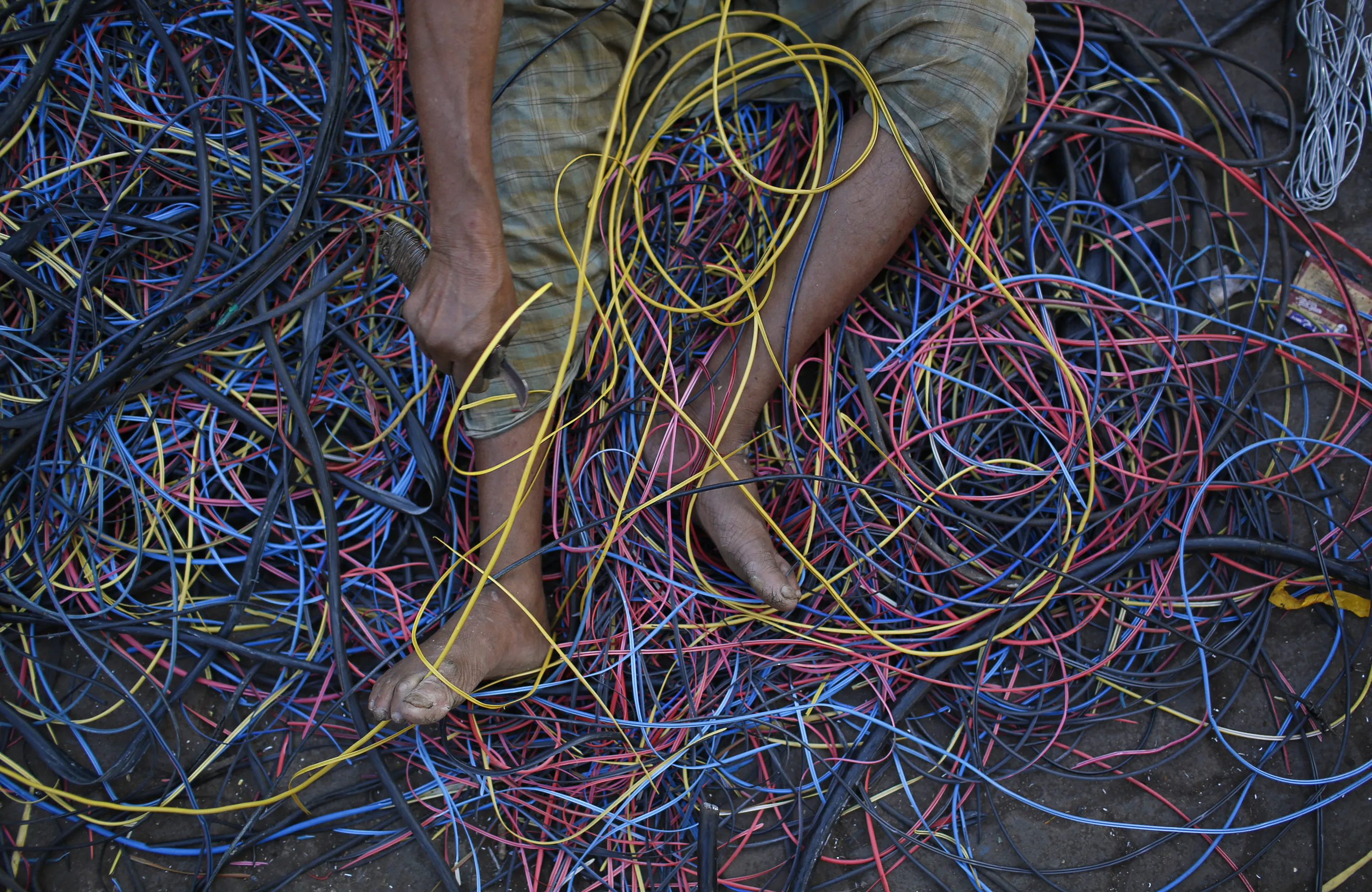 A man removes copper wiring from electrical cables outside a scrap shop in Dharavi, one of Asia's largest slums, in Mumbai December 10, 2012. (Photo by Danish Siddiqui/Reuters)