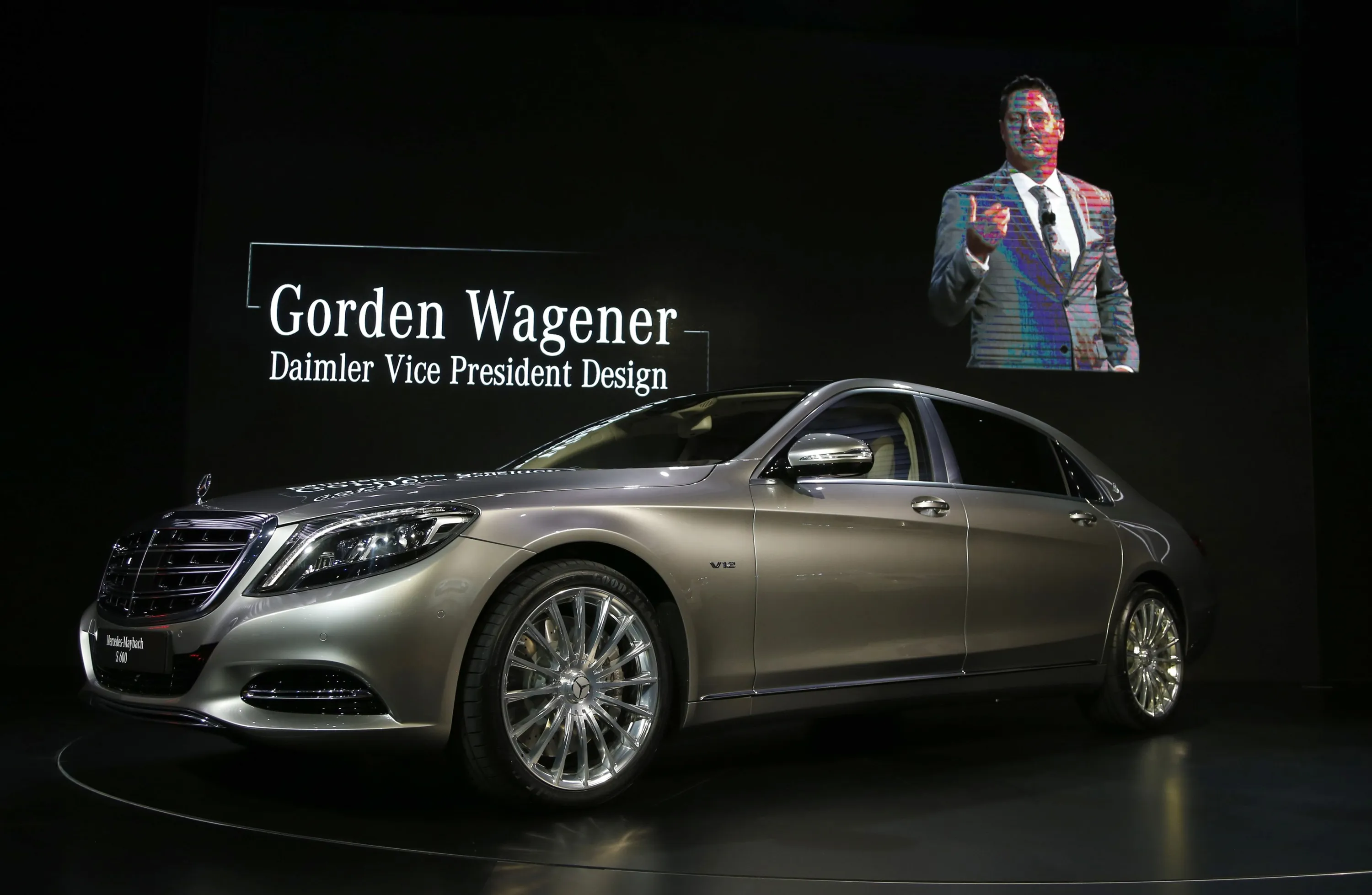Gorden Wagener, Daimler vice president of design, is shown on screen speaking about the Mercedes-Maybach S-Class during the model's world debut at the Los Angeles Auto Show in Los Angeles, California November 19, 2014. (Photo by Lucy Nicholson/Reuters)