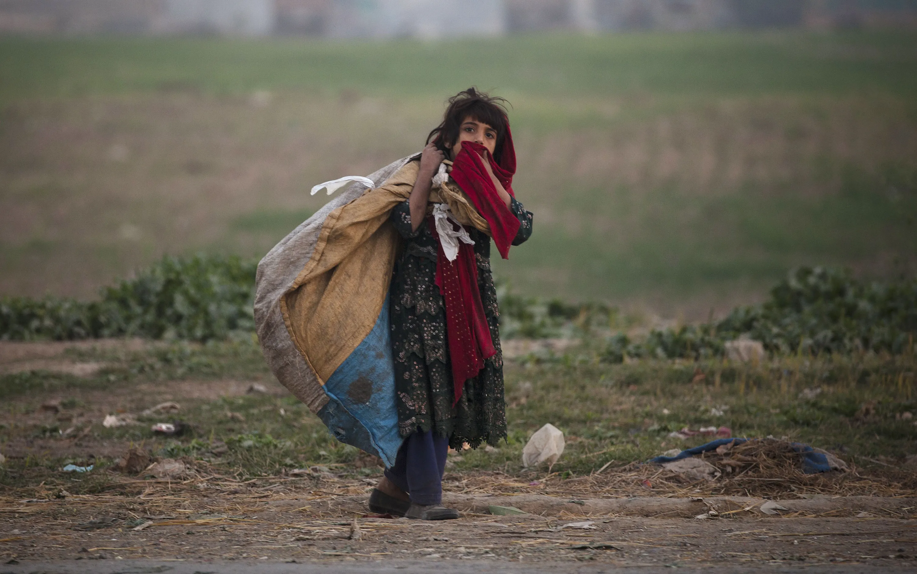 A Pakistani girl who is displaced with her family from the tribal area of Bajur where security forces are fighting against militants, collects recyclable items in Islamabad's slums, Thursday, November 20, 2014, on Universal Children's Day, which is marked annually by the United Nations. (Photo by B.K. Bangash/AP Photo)